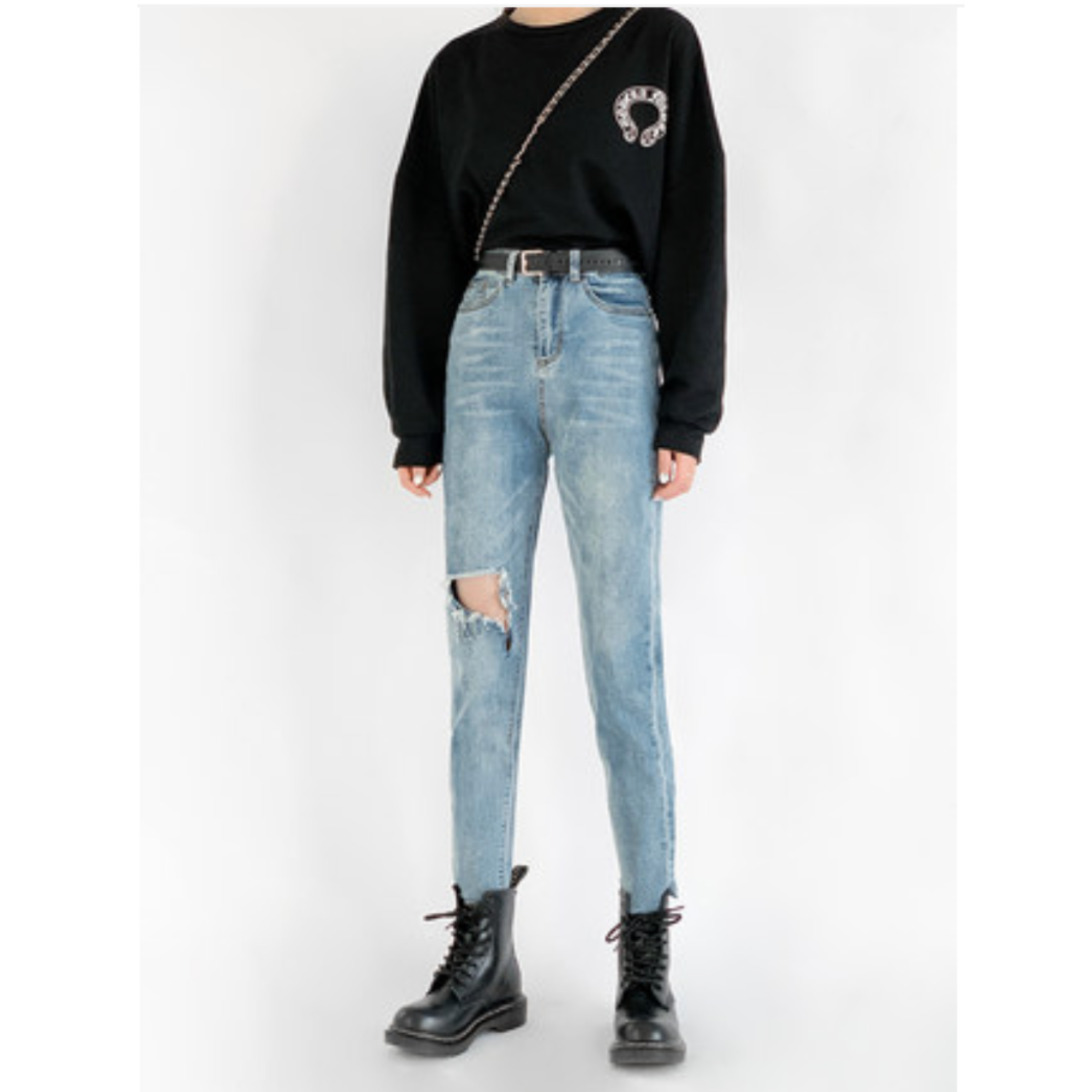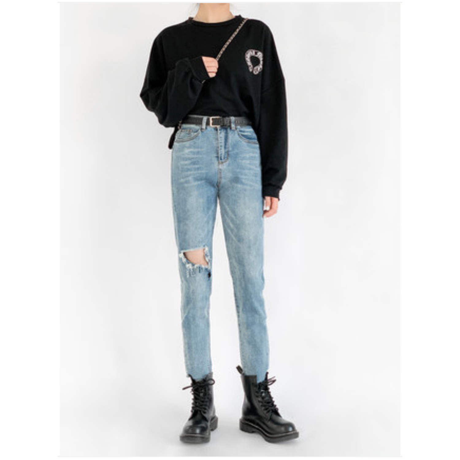 High Rise Knee-cut Straight Leg Jeans, ootd, stylish, chic, summer | Size: M / L / XL / 2XL / 3XL / 4XL |