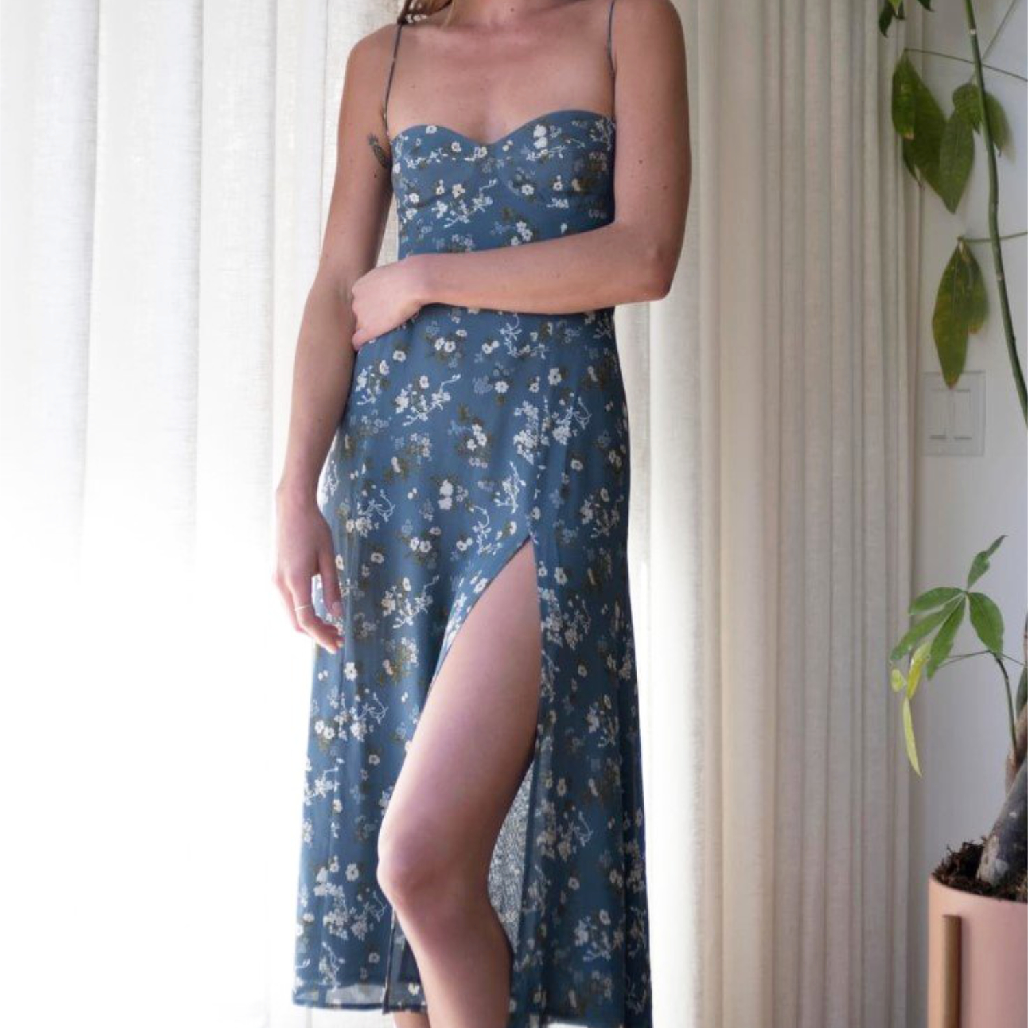 Pixie Market Floral Split Skirt