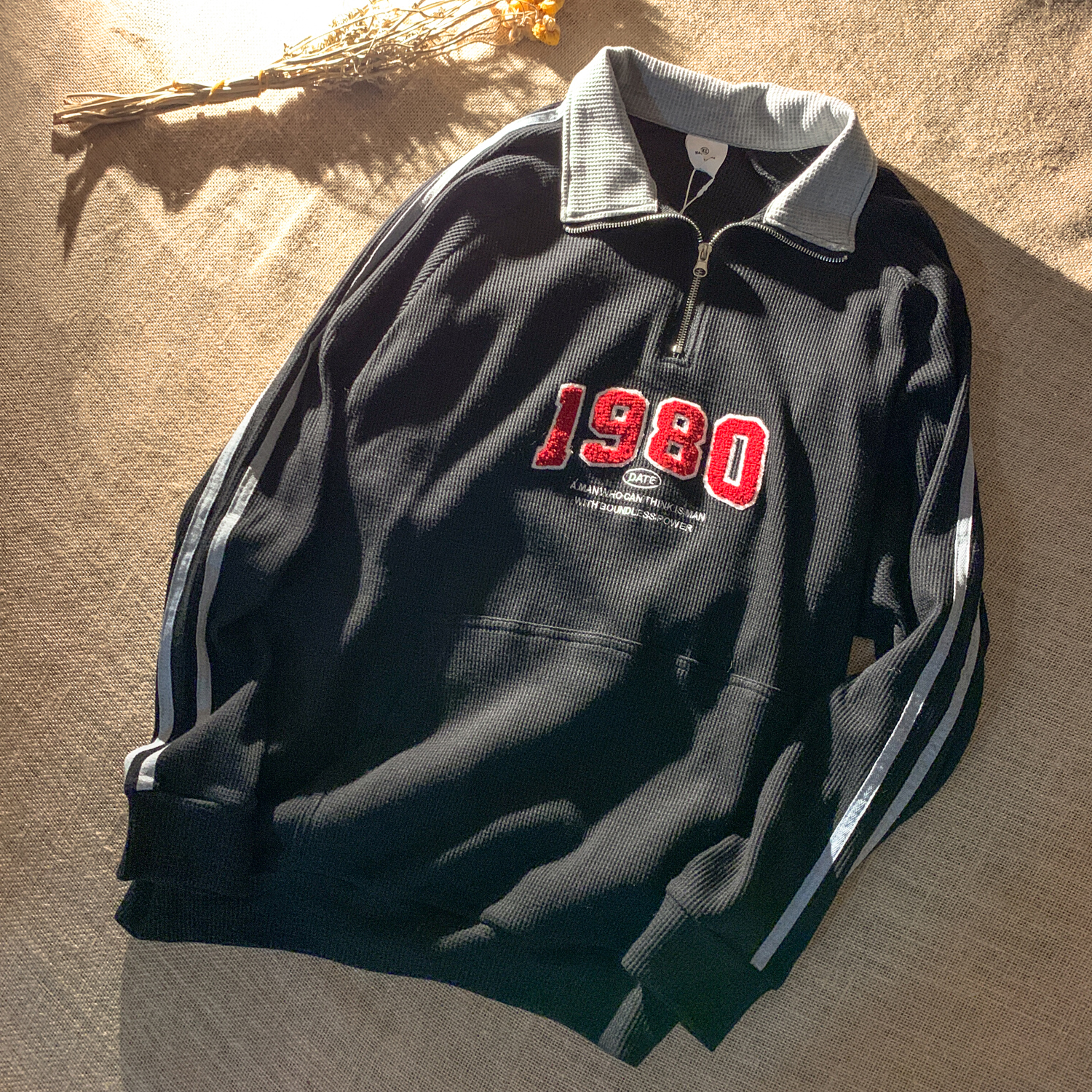 1980 Retro Pull-over Hoodie | Size: Please refer to the size chart above | Colour: Grey & Black |