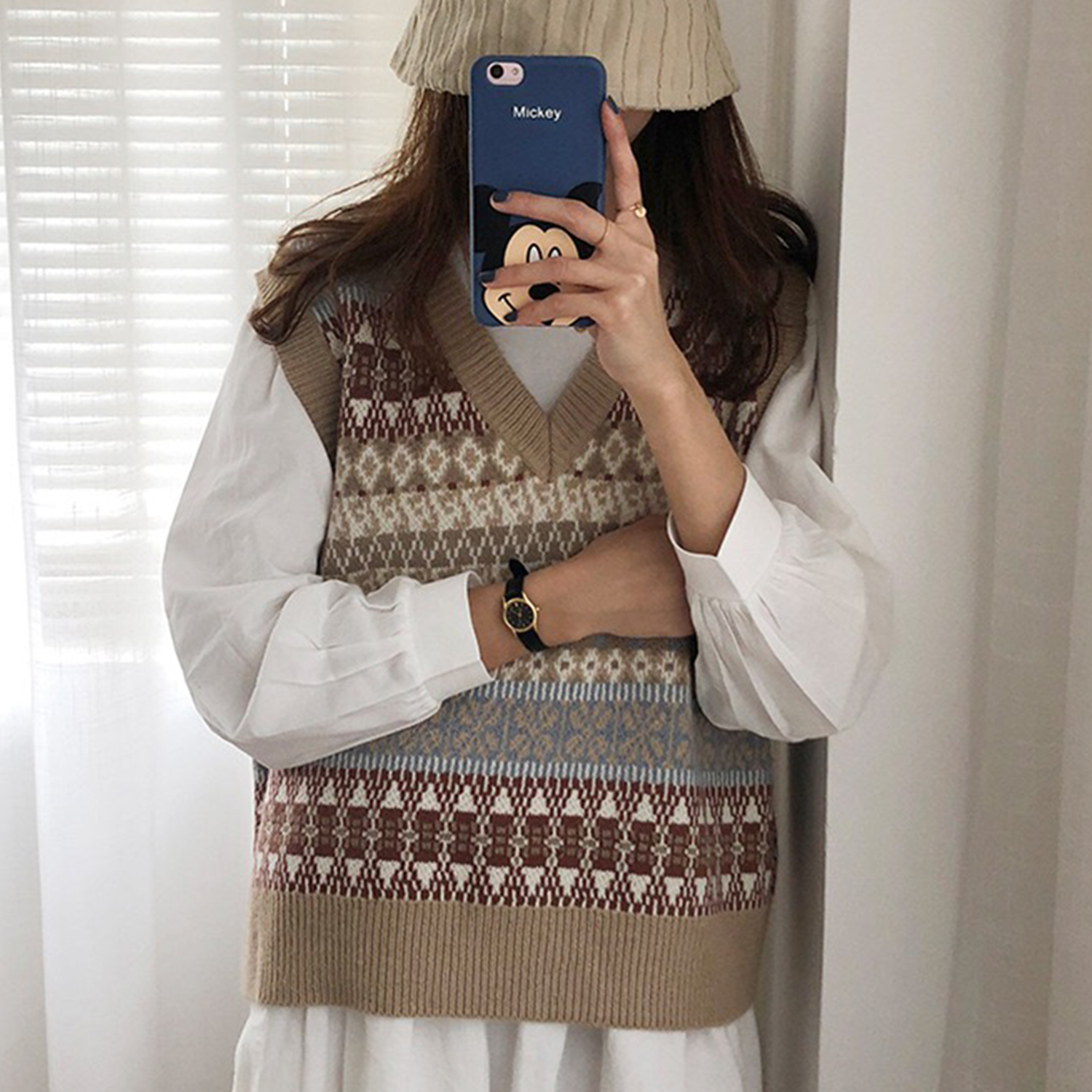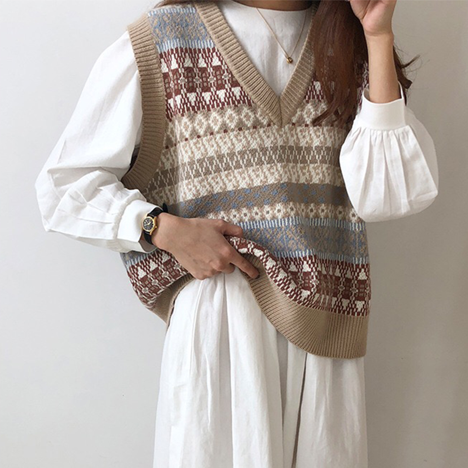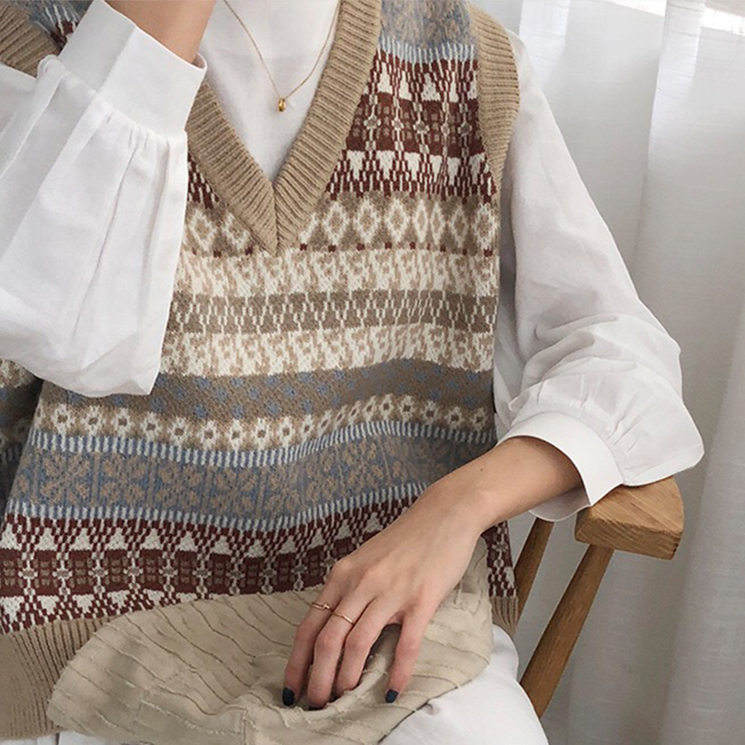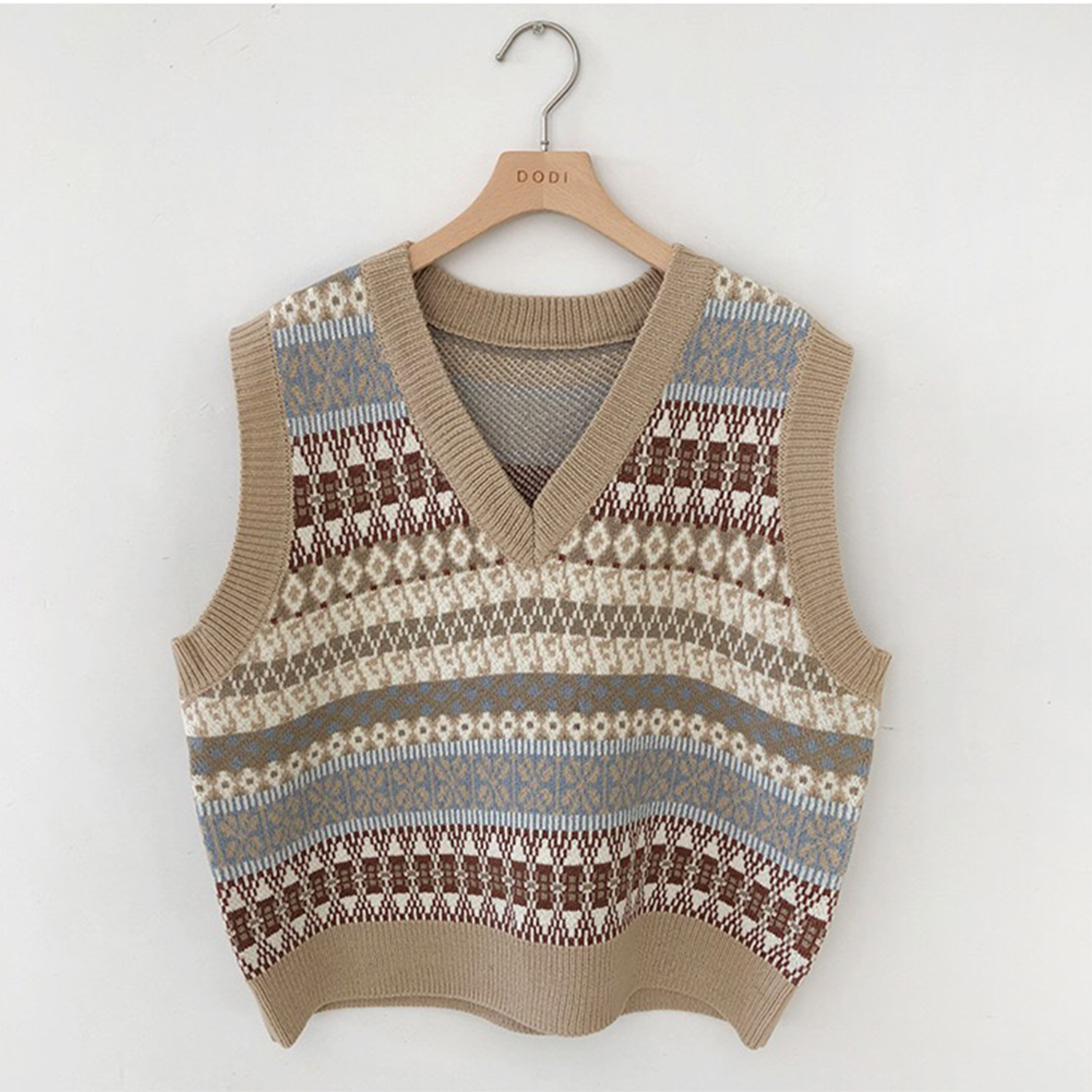V-neck Knitted Vest With Monogram In Apricot | Size: Please refer to the size chart above |