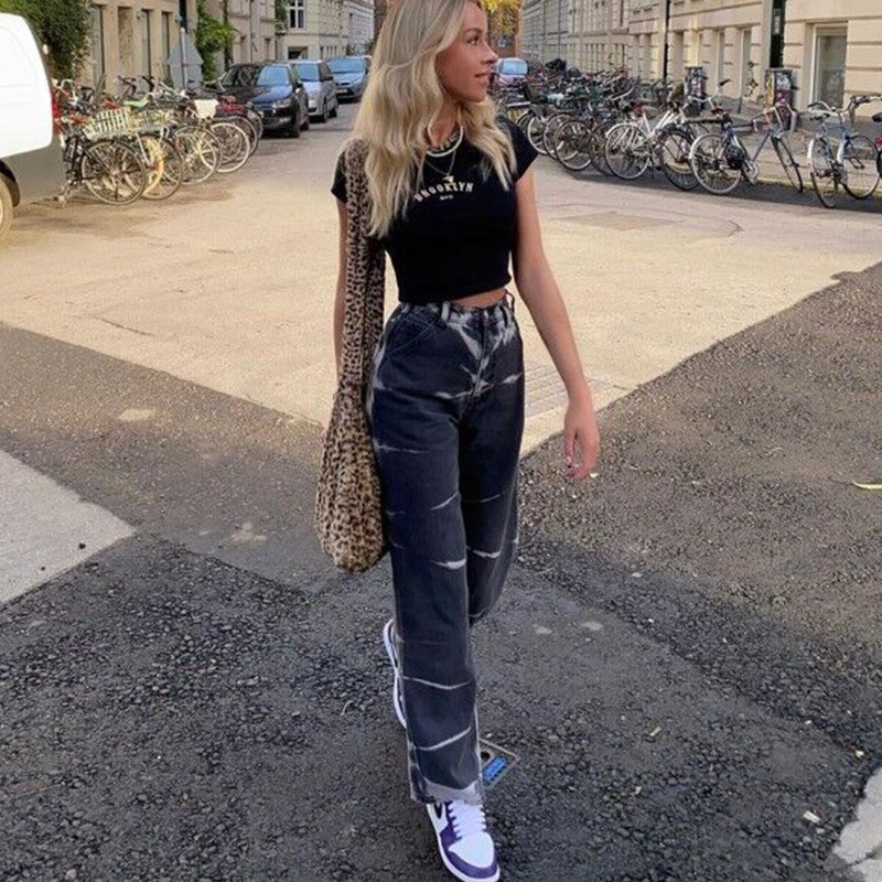 Tie-dye Ash Jean With High Waist Loose Straight-leg