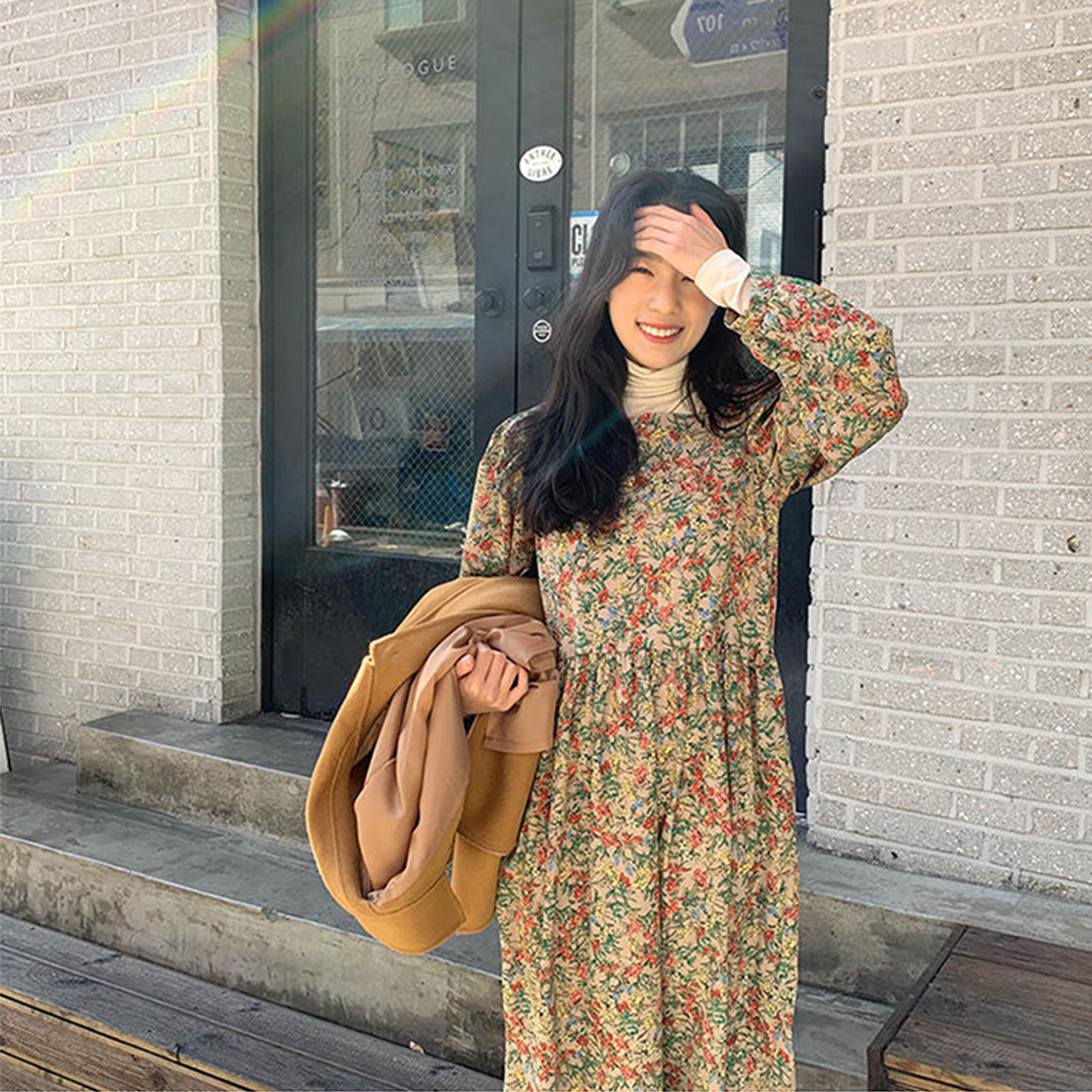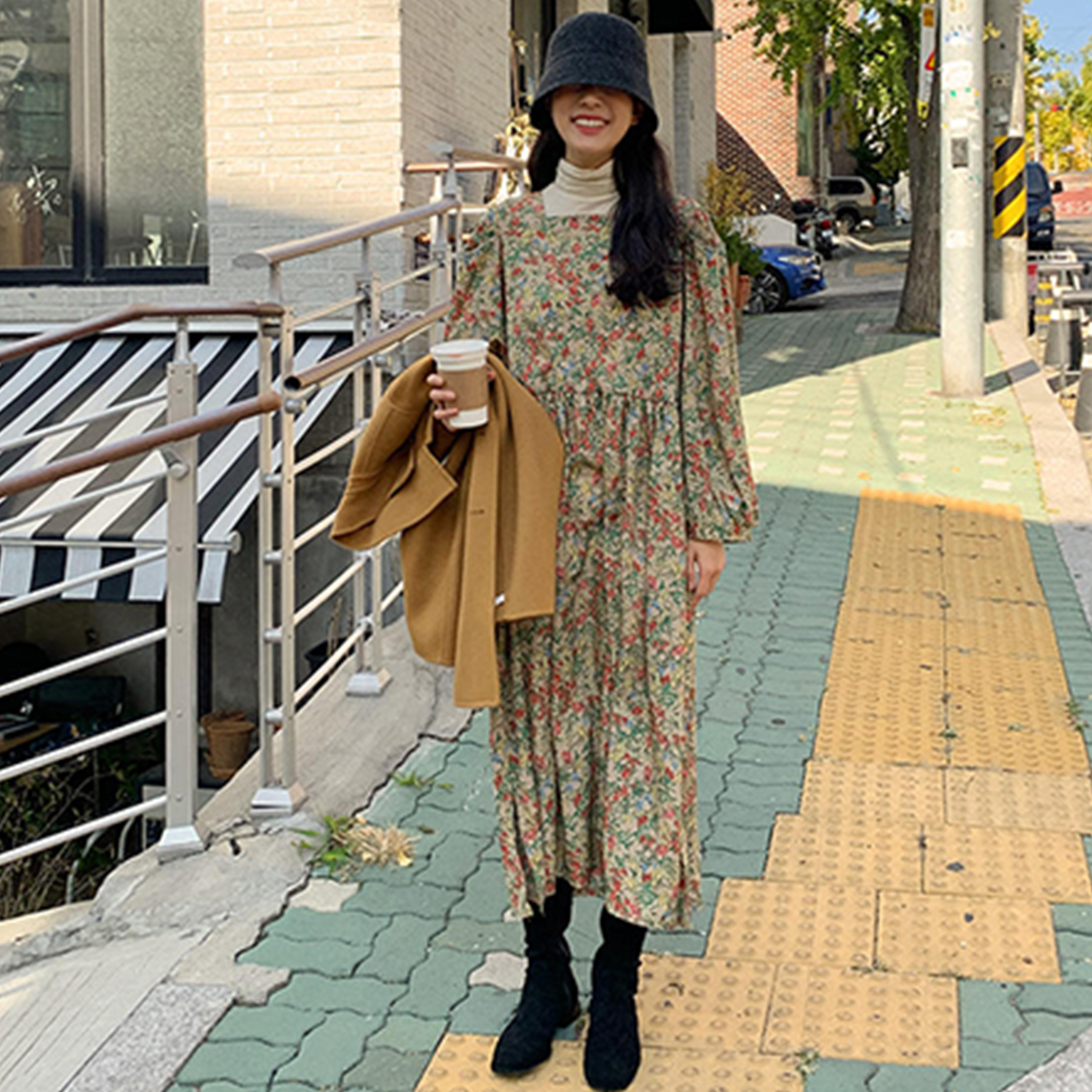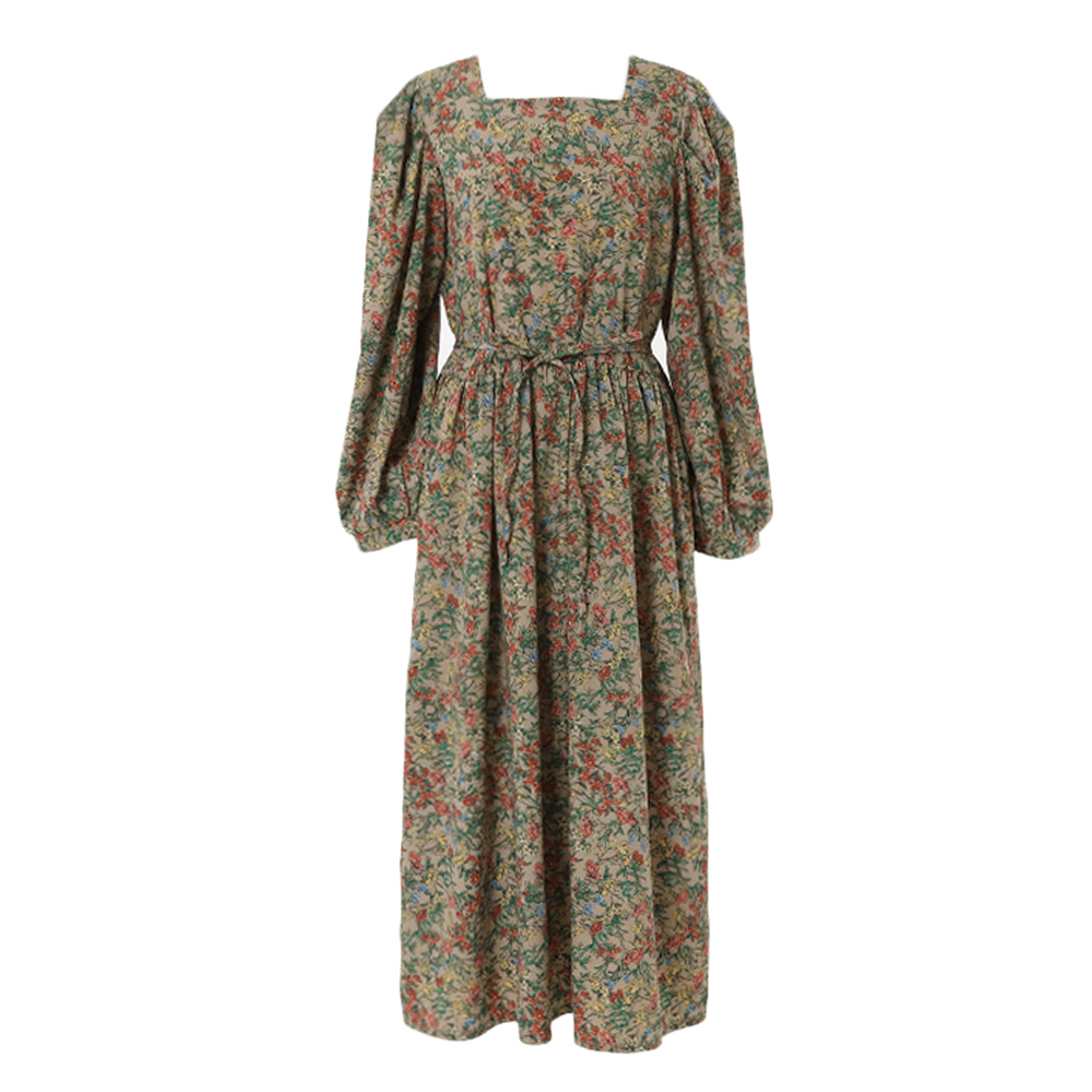 Square Neck Puff Sleeve Floral Dress | Size: Please refer to the size chart |
