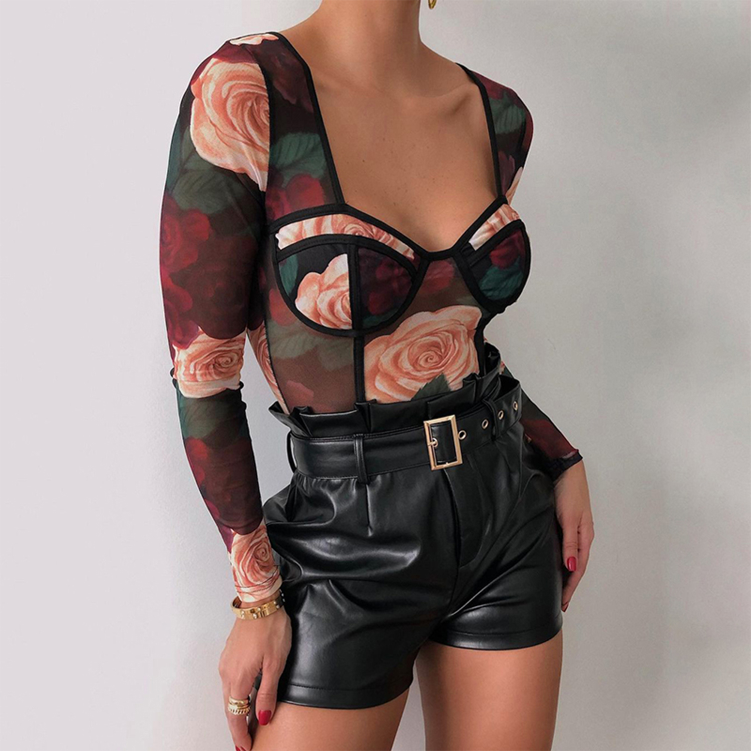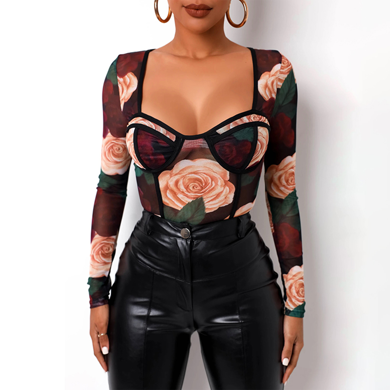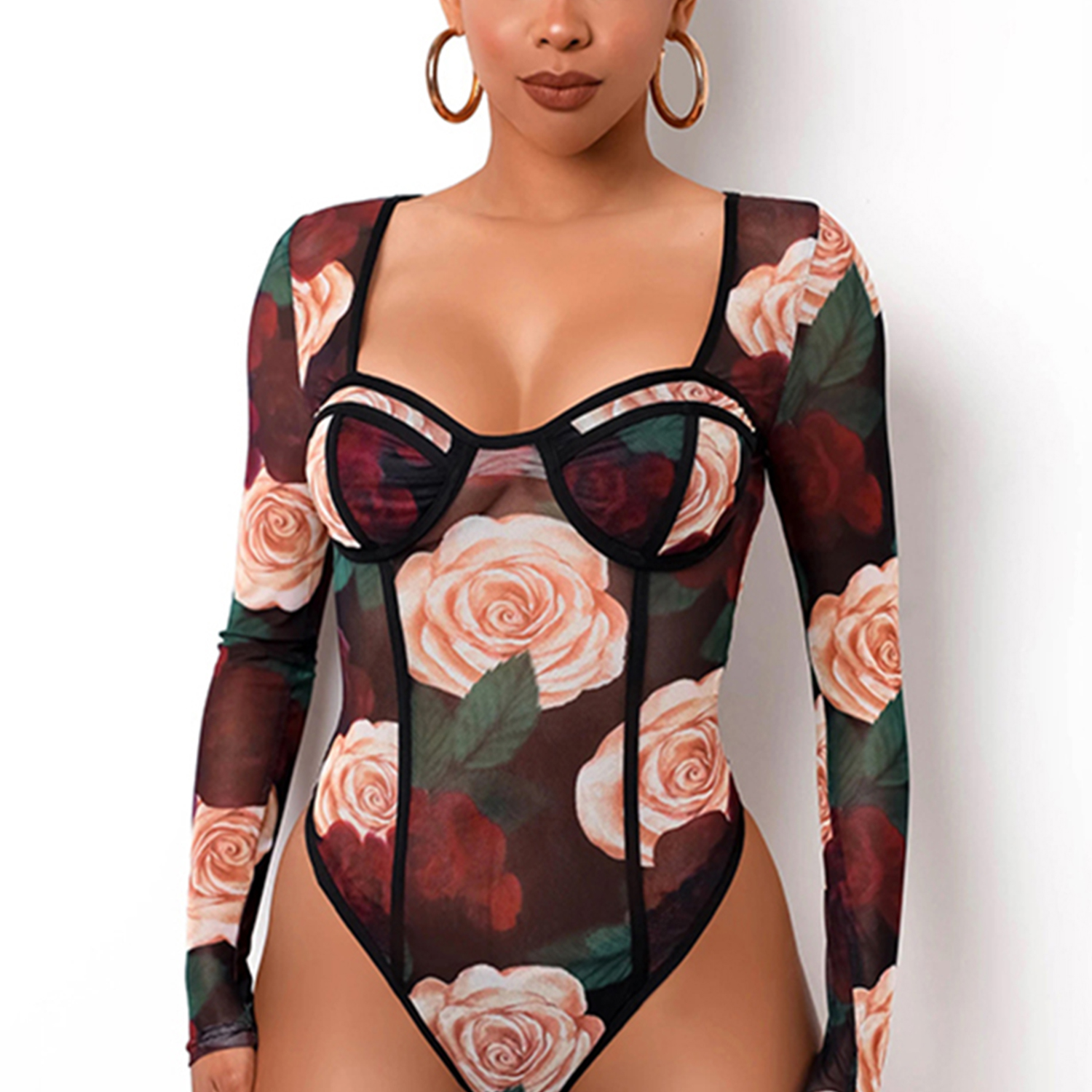 Floral See-through Print Long Sleeve Bodies