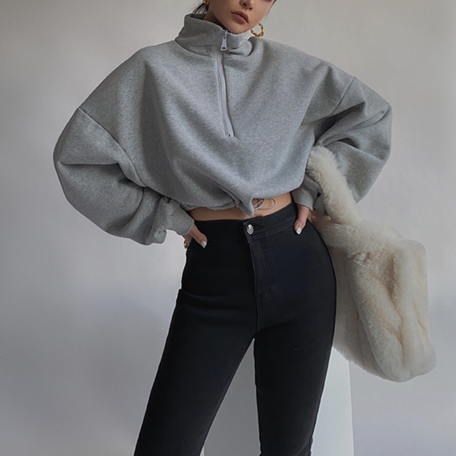 Cool Girl Padded Stand Collar Sweater | Size: S / M | Colour: Blue / Grey / Black | Free Shipping Over $45!