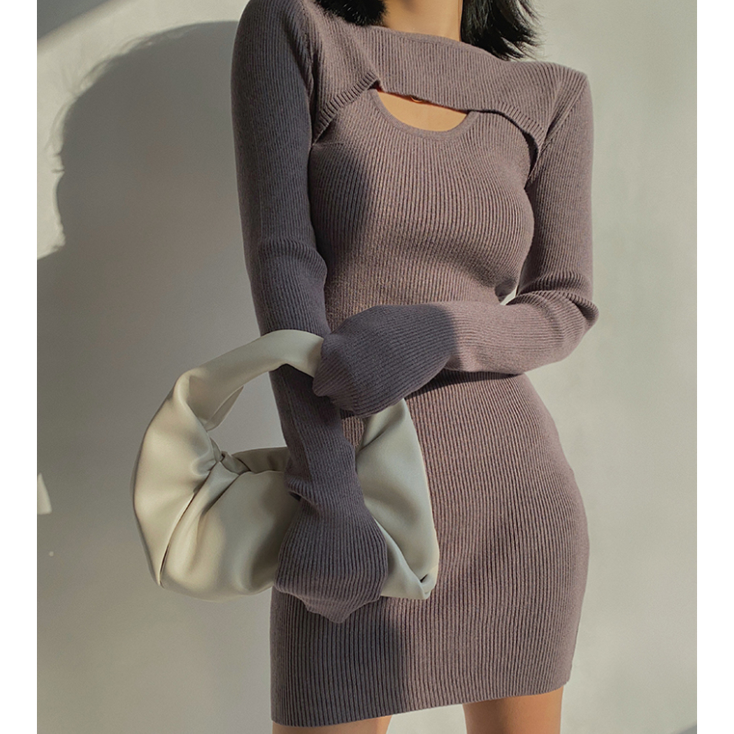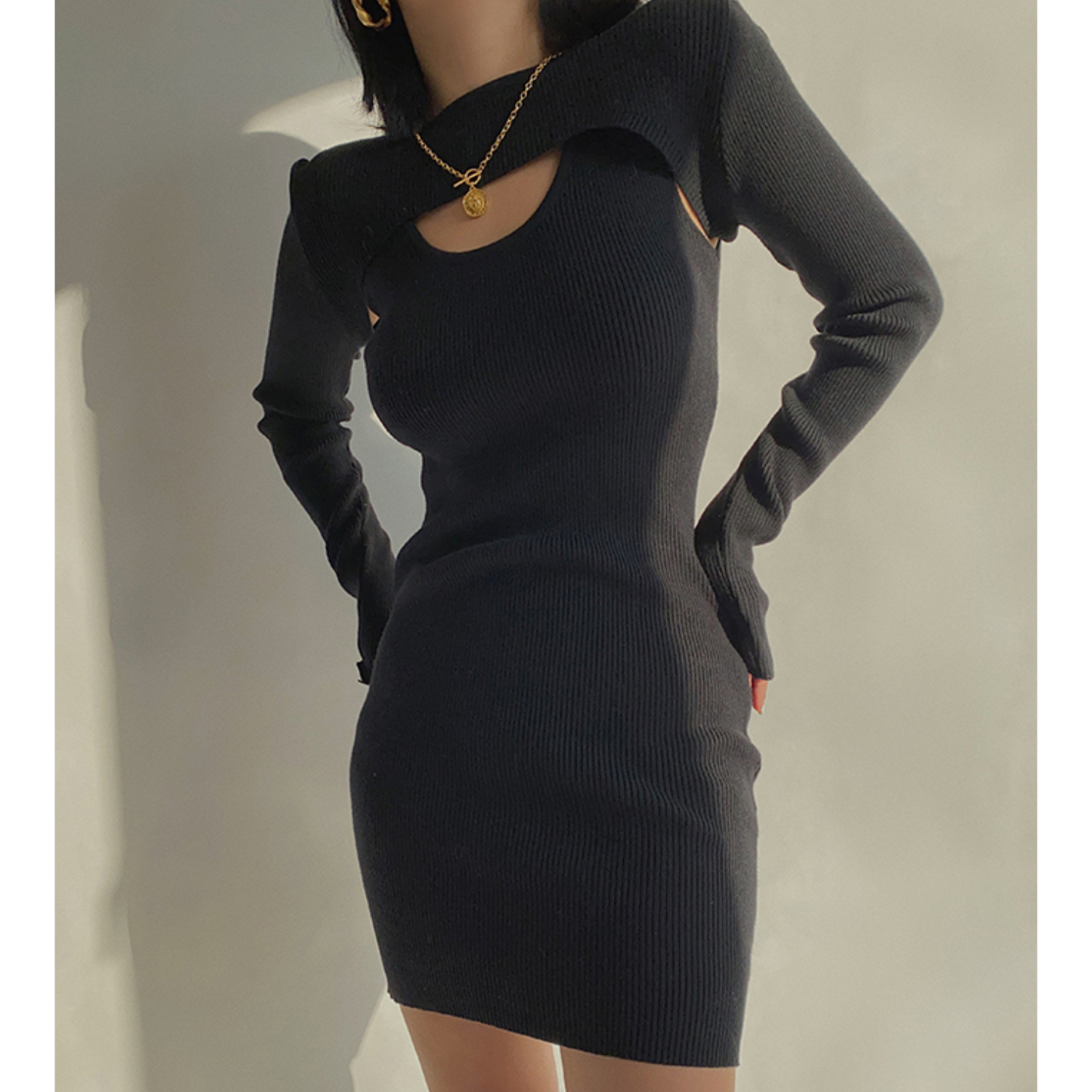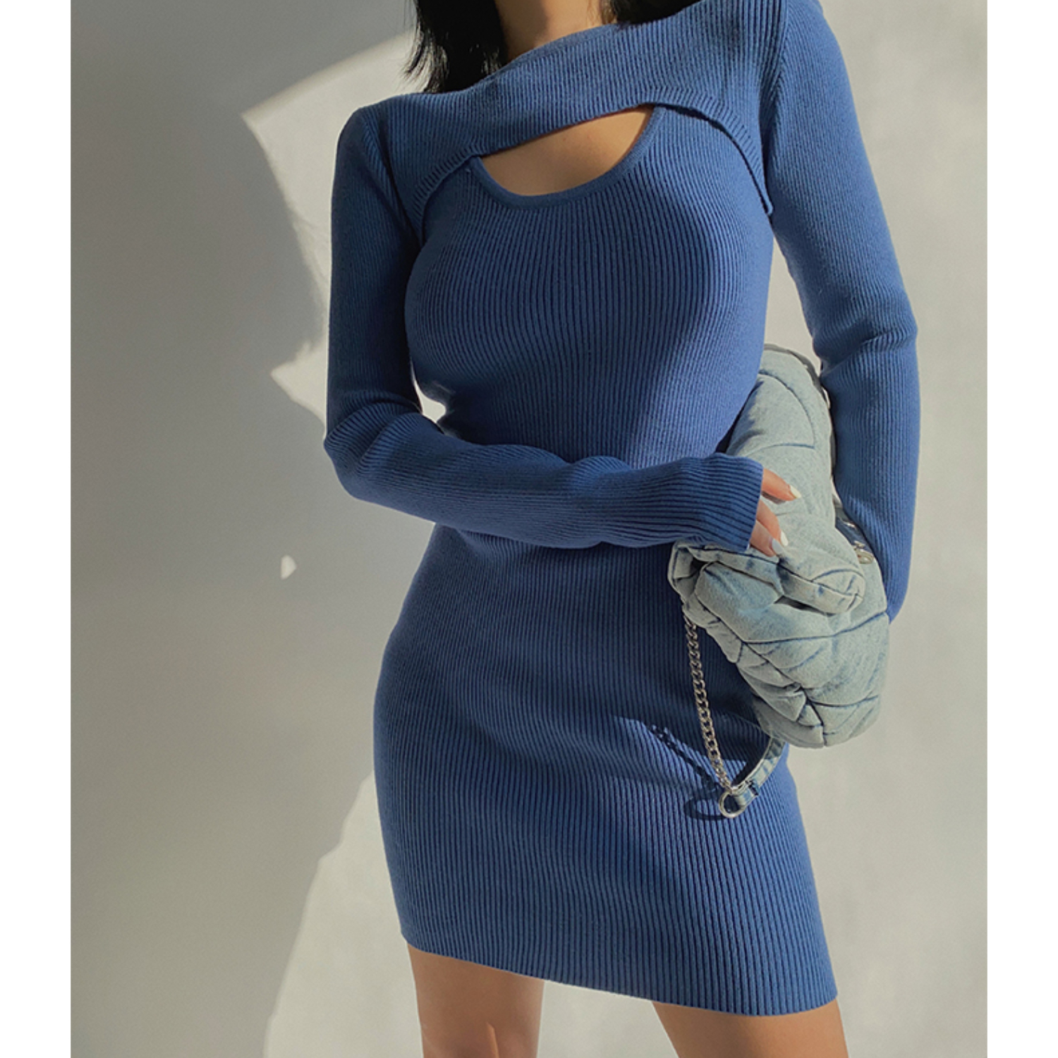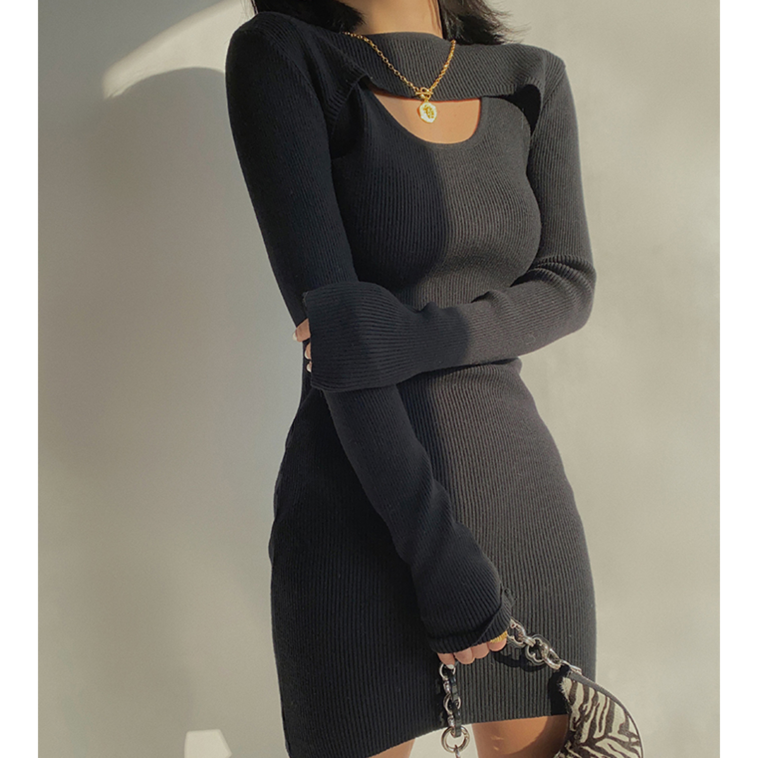 Long Sleeve Cami Skirt Mix & Match Suit | Freesize | Top: Shoulder: 30 / Sleeve: 60 | Dress: Chest: 64-90 / Length: 81 | Colour: brown / black / blue | Free Shipping Over $45!