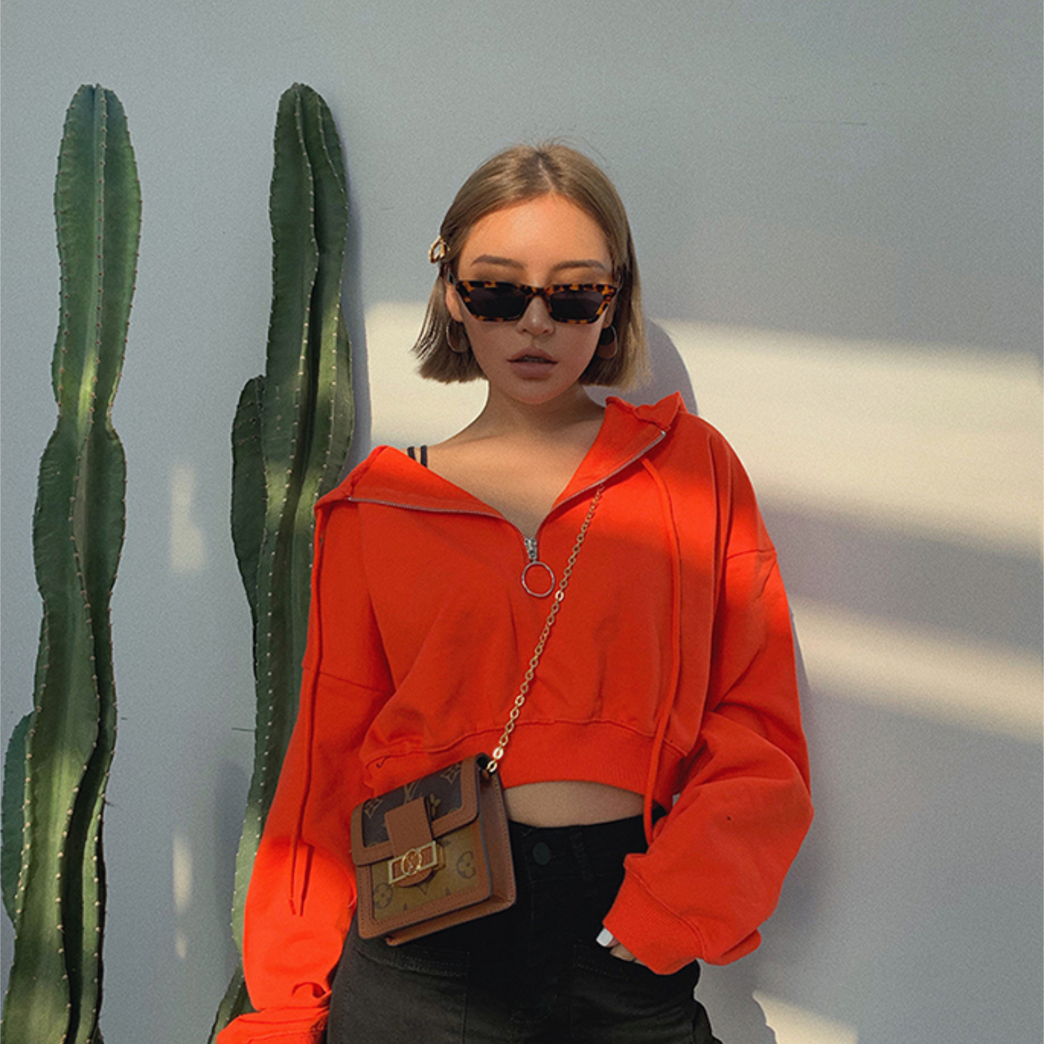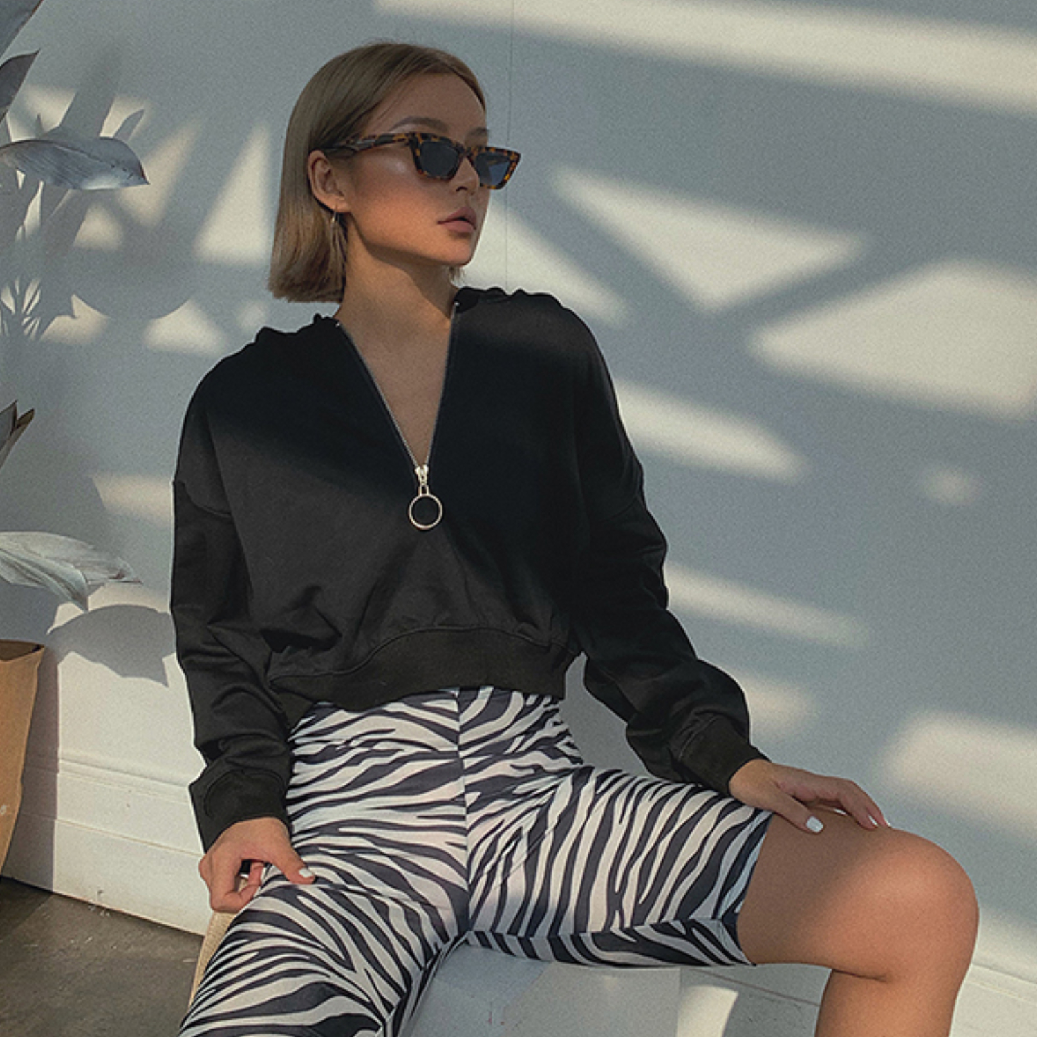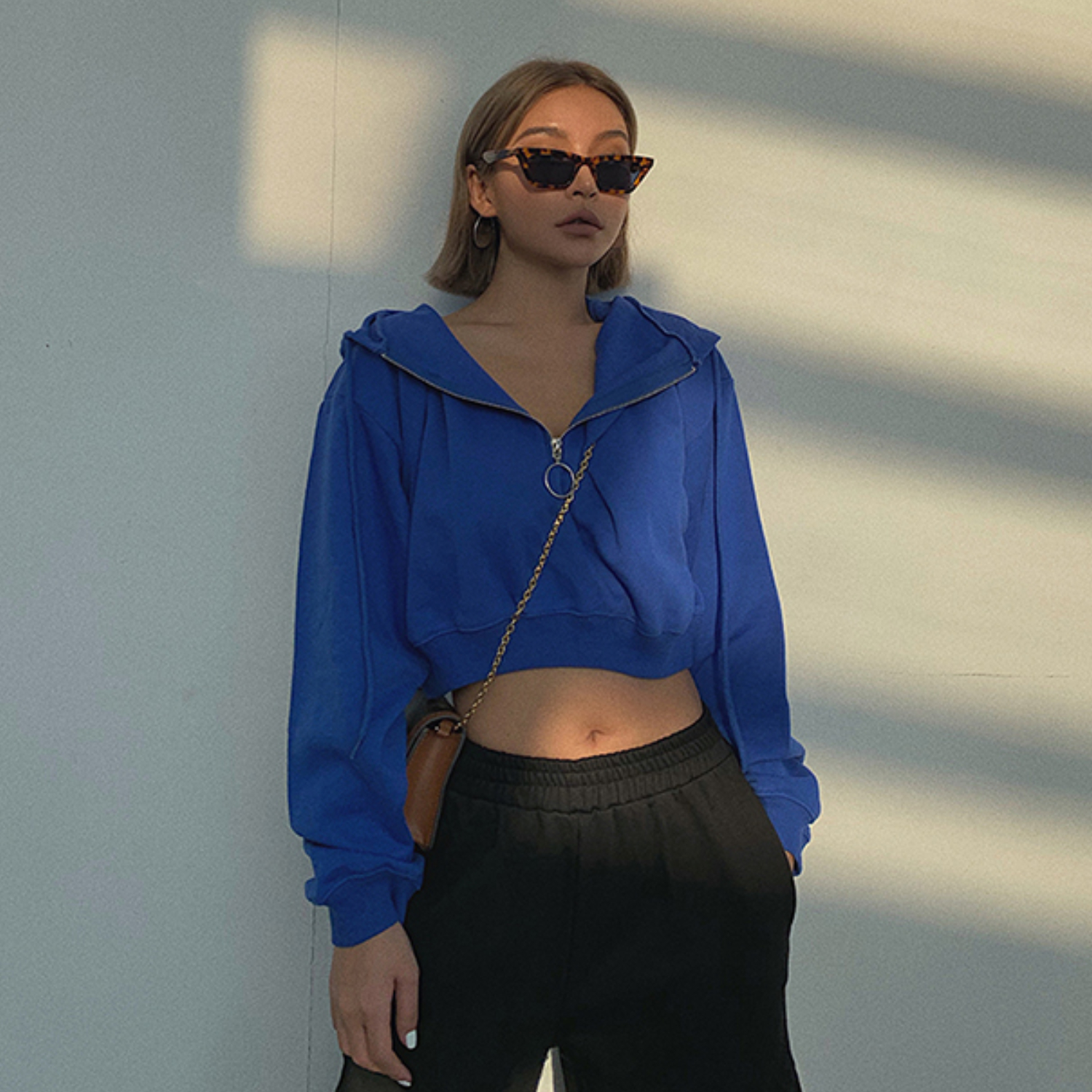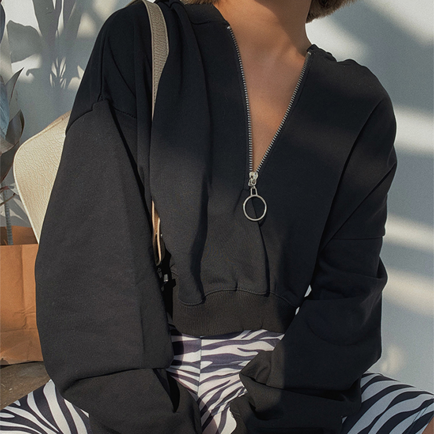 Plain Zipper Hooded Sweater