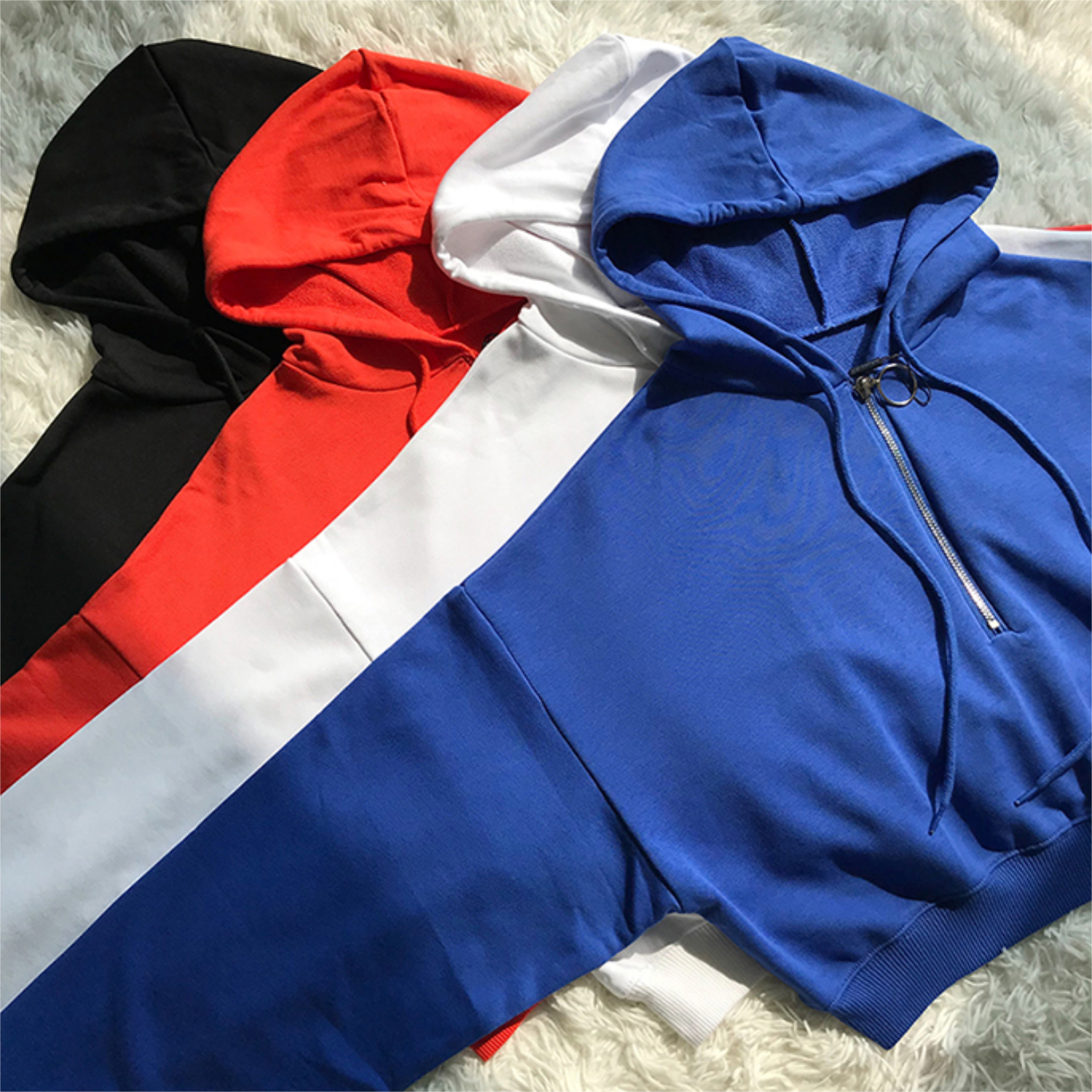 Plain Zipper Hooded Sweater | Size: S / M | Colour: Black / Blue / White / Red | Free Shipping Over $45!