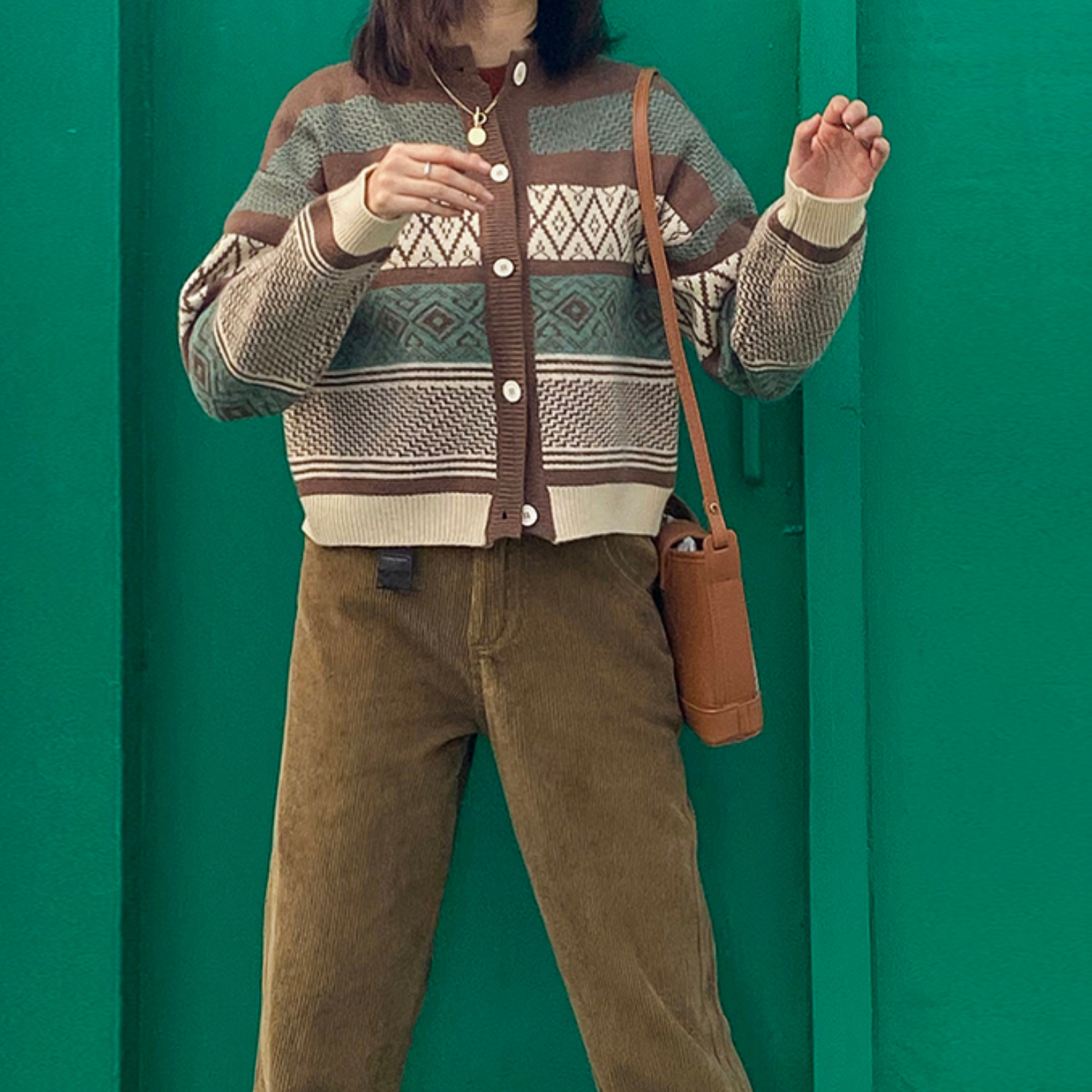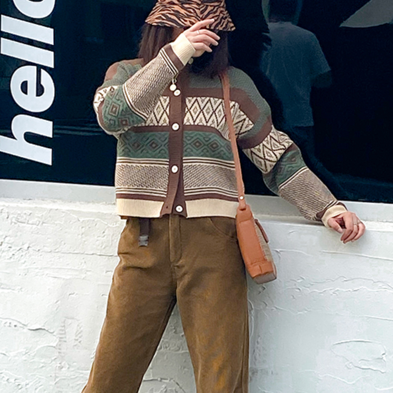 Retro Monogram Cardigan | Freesize | Shoulder: 55 / Chest: 104 / Sleeve: 50 / Length: 51 CM | Free Shipping Over $45!