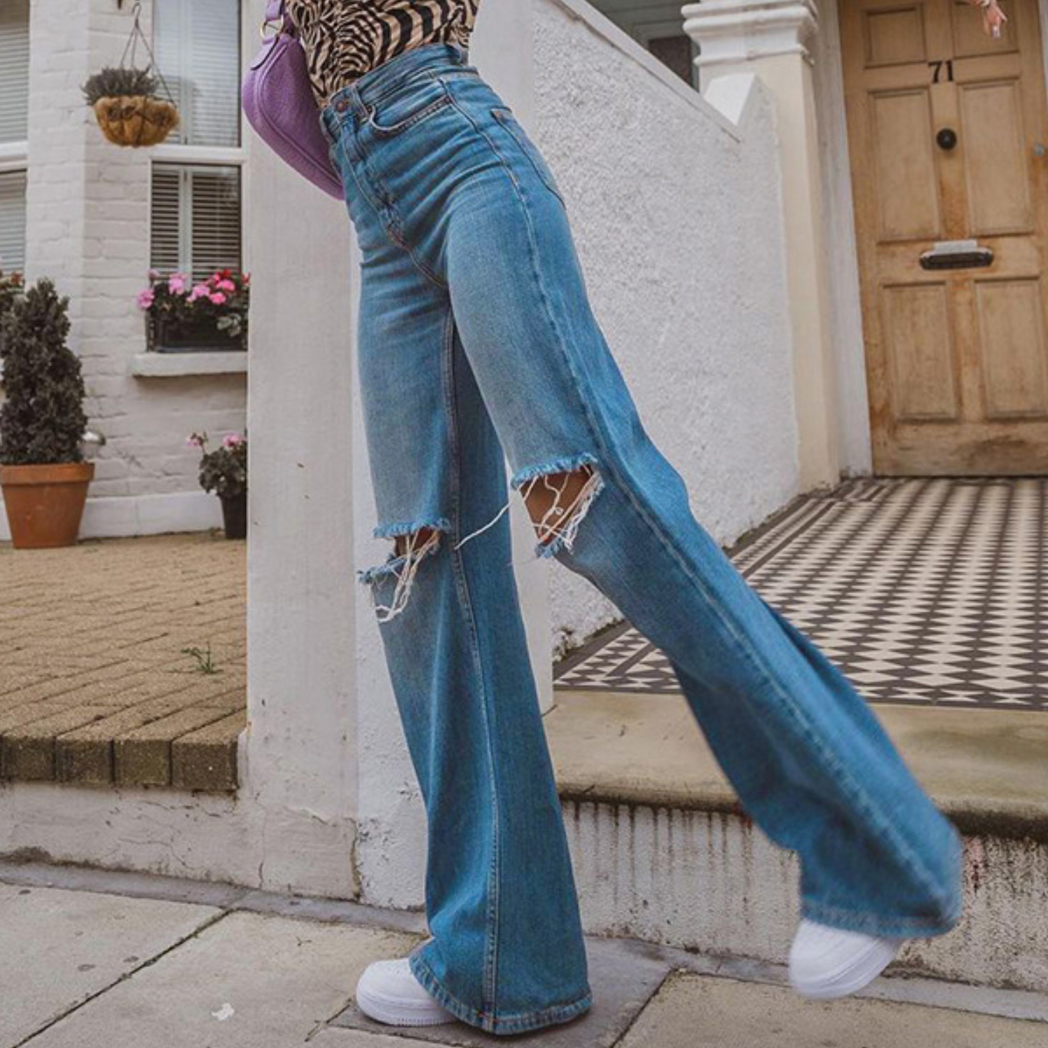 High Rise Straight Ripped Wide Leg Jean