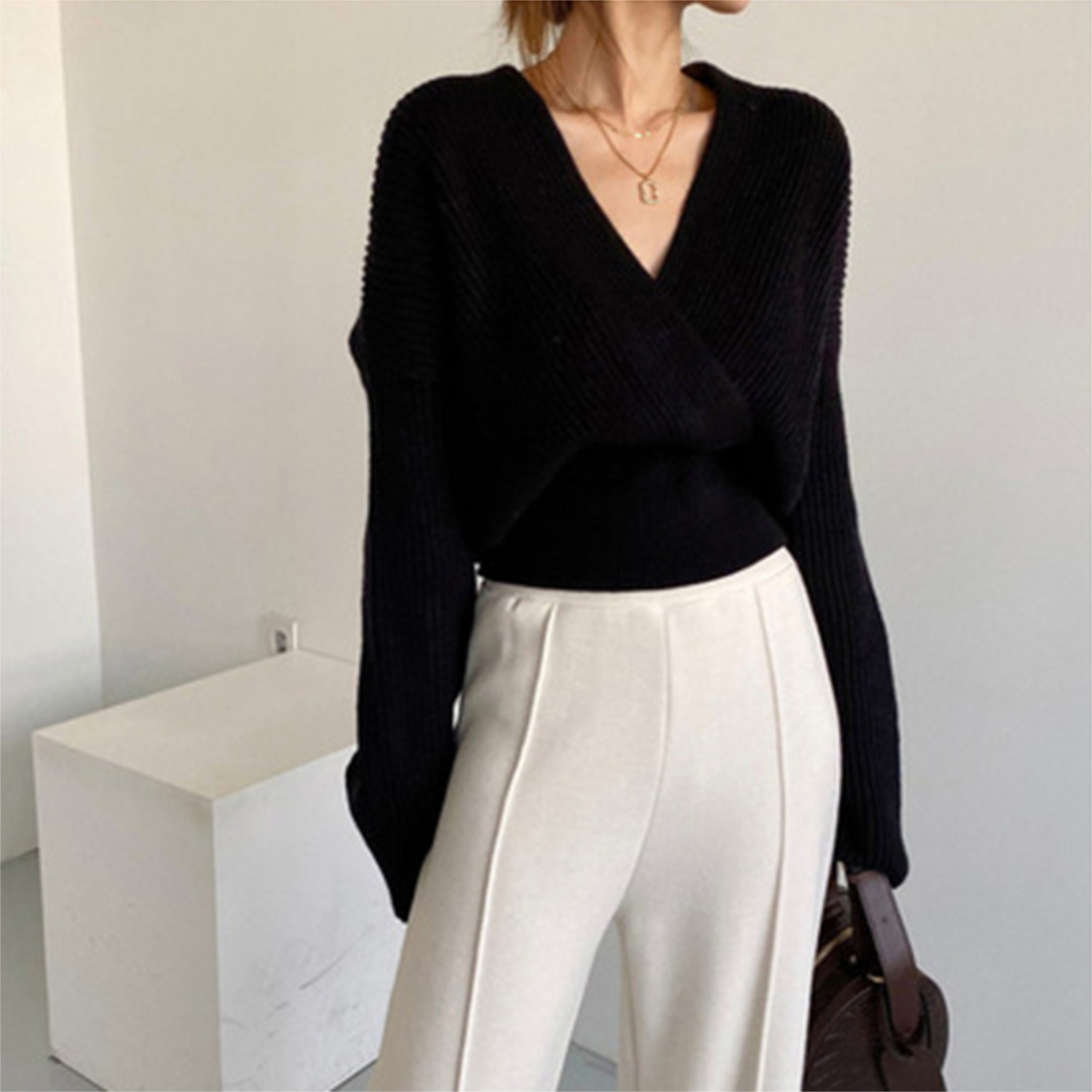 V-neck Cross Long Sleeve Sweater