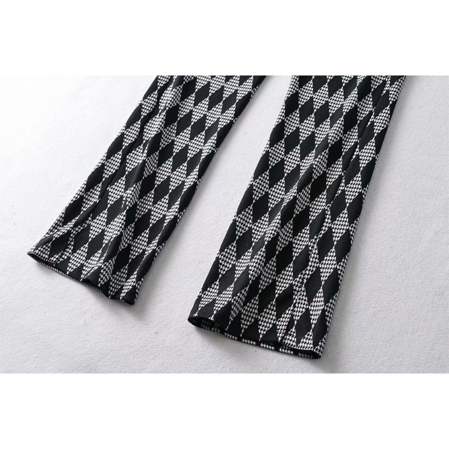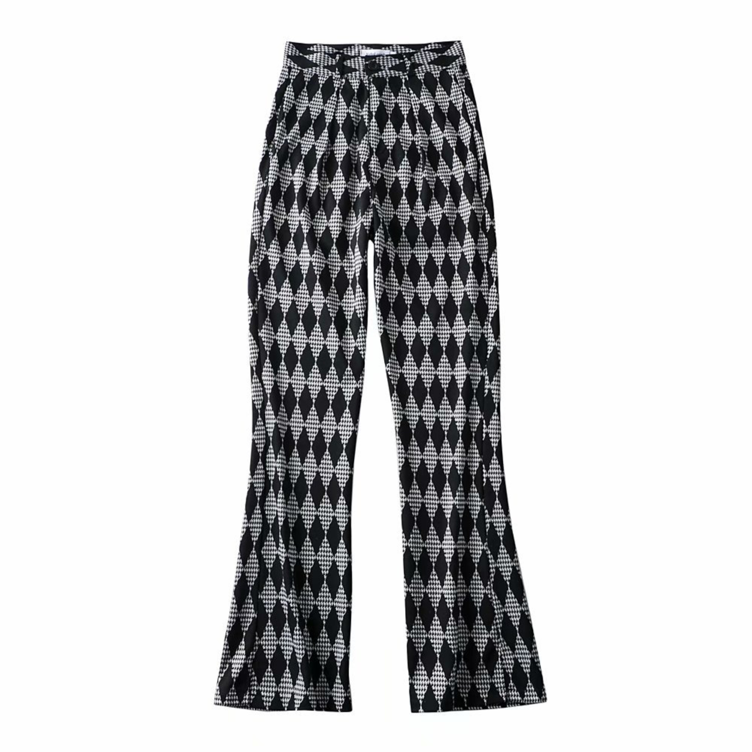 High Waist Diamond Plaid Straight Drape Wide-leg