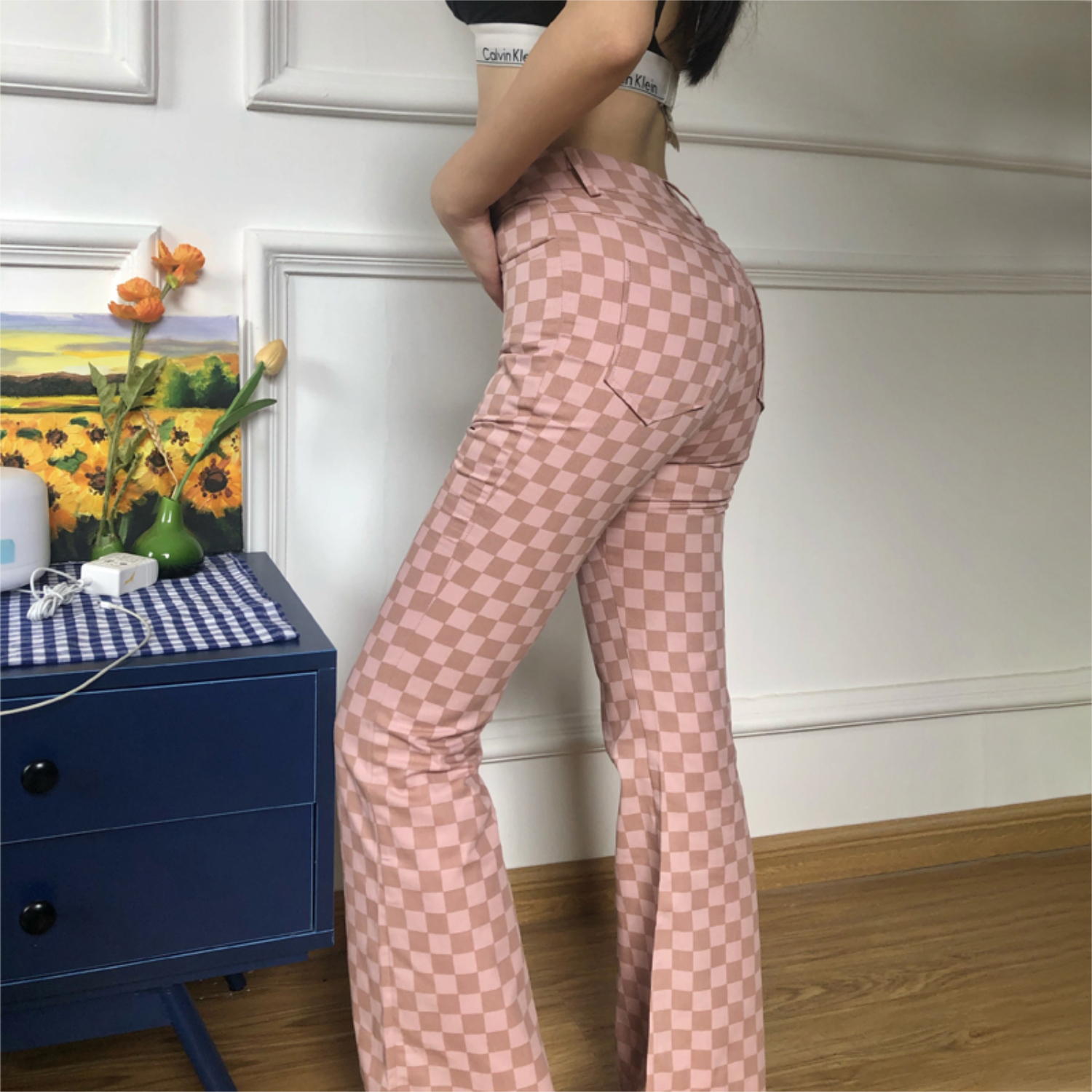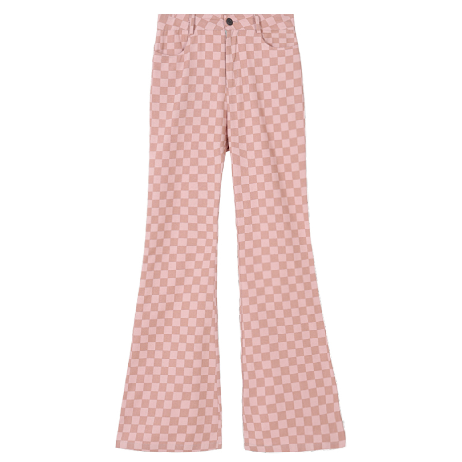High Waist Wide Leg Trousers In Pink Check | Size:S / M / L | Free Shipping Over $45!