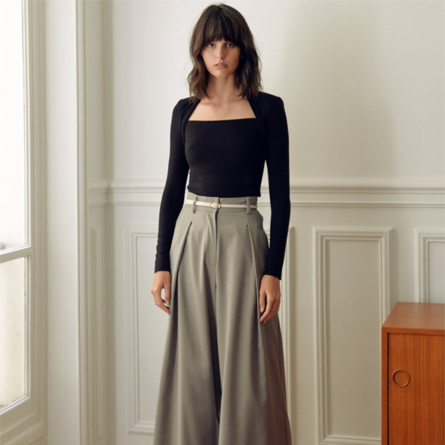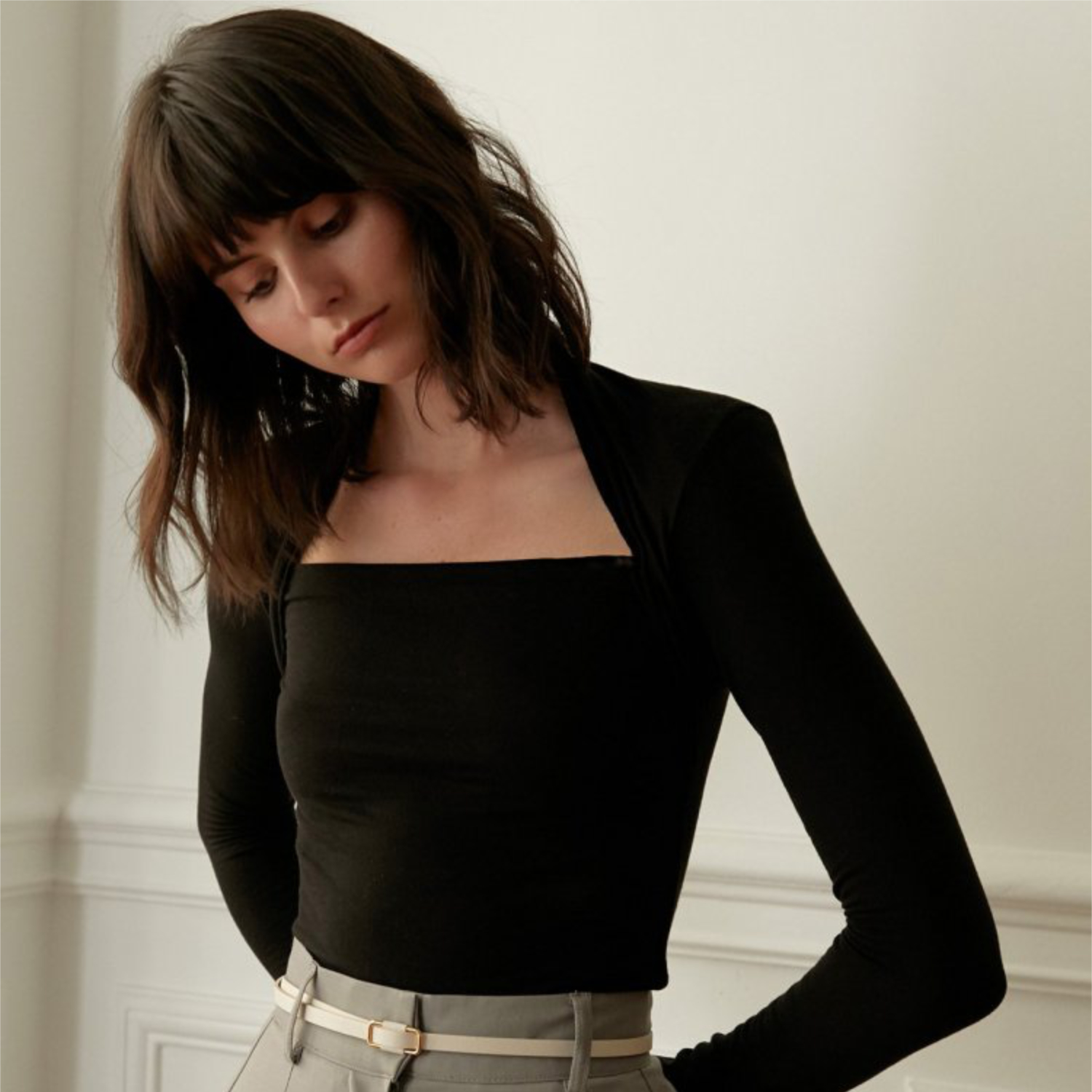 Pixie Market Tencel Padded Shoulder Top | Freesize: Shoulder:32cm / Chest:64cm / Sleeve:63cm / Length:56cm |