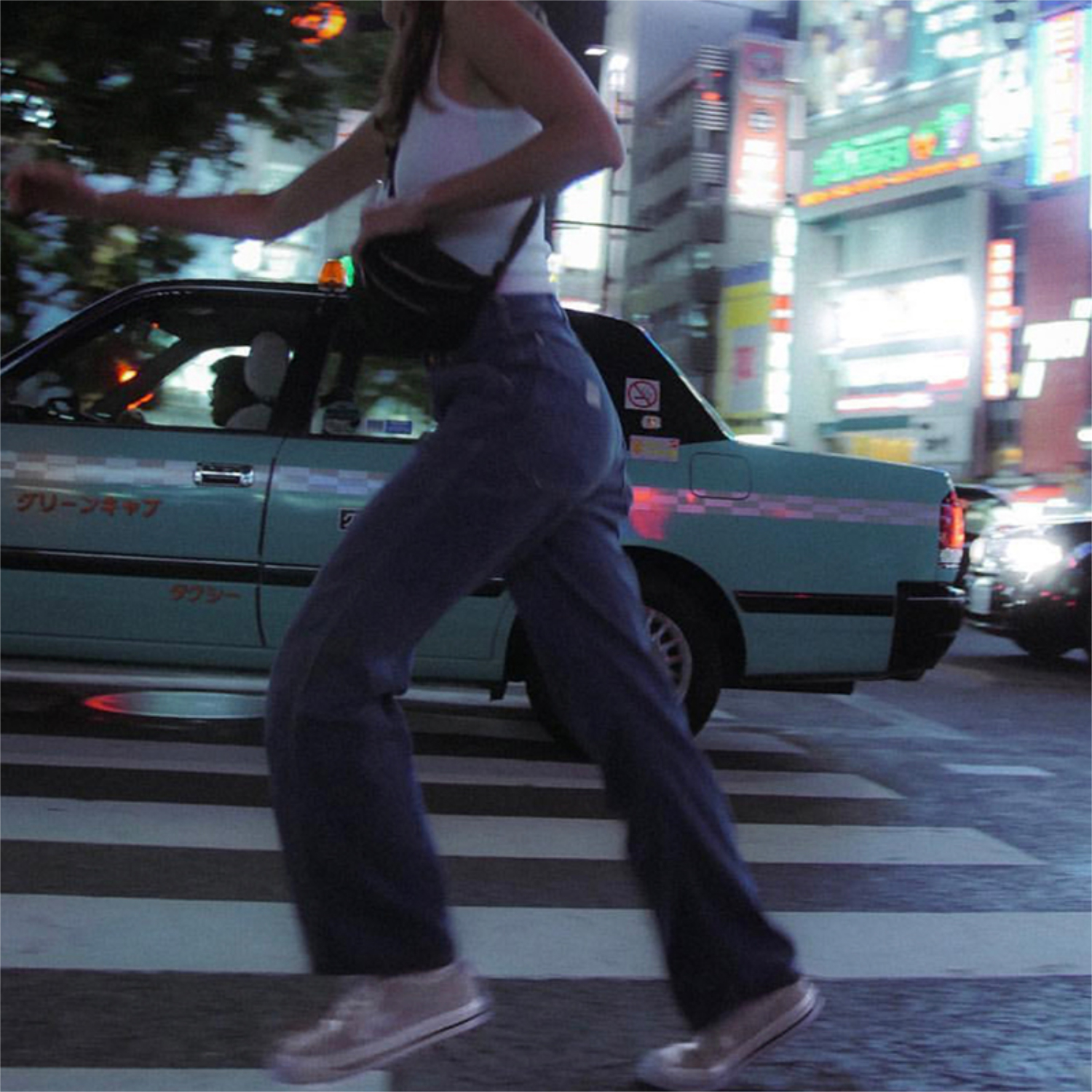 2021 Summer - Street Washed Purple High-rise Straight-leg Jeans | Size: S / M / L |