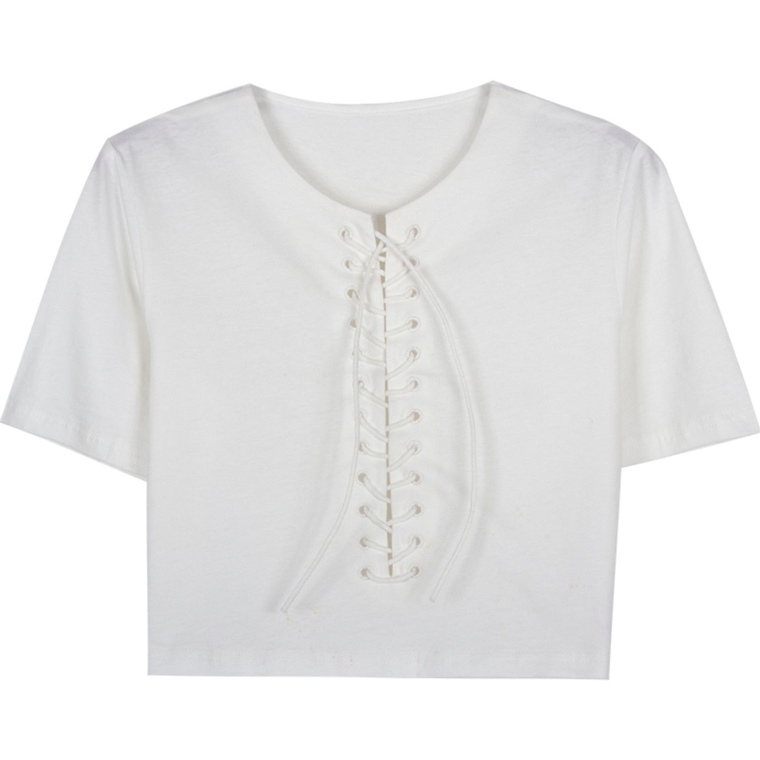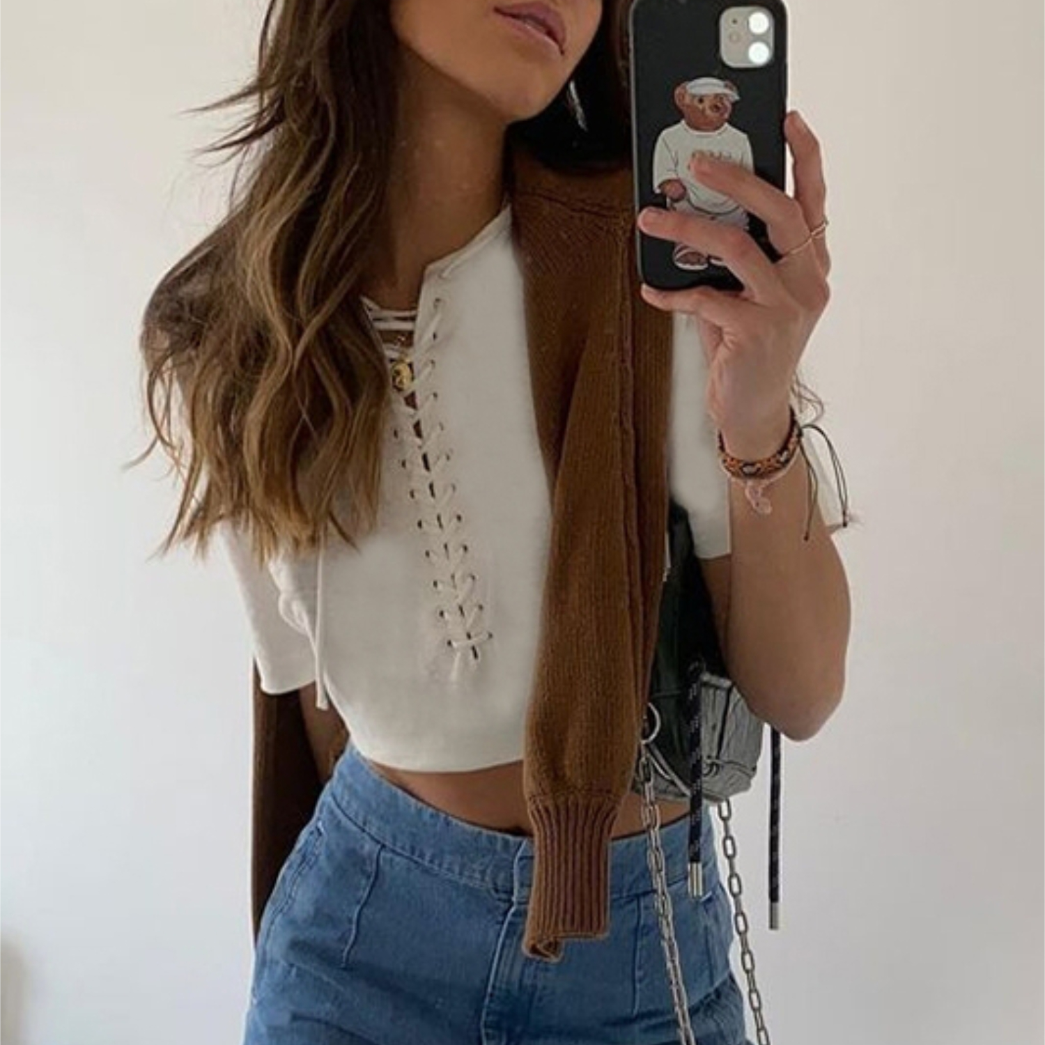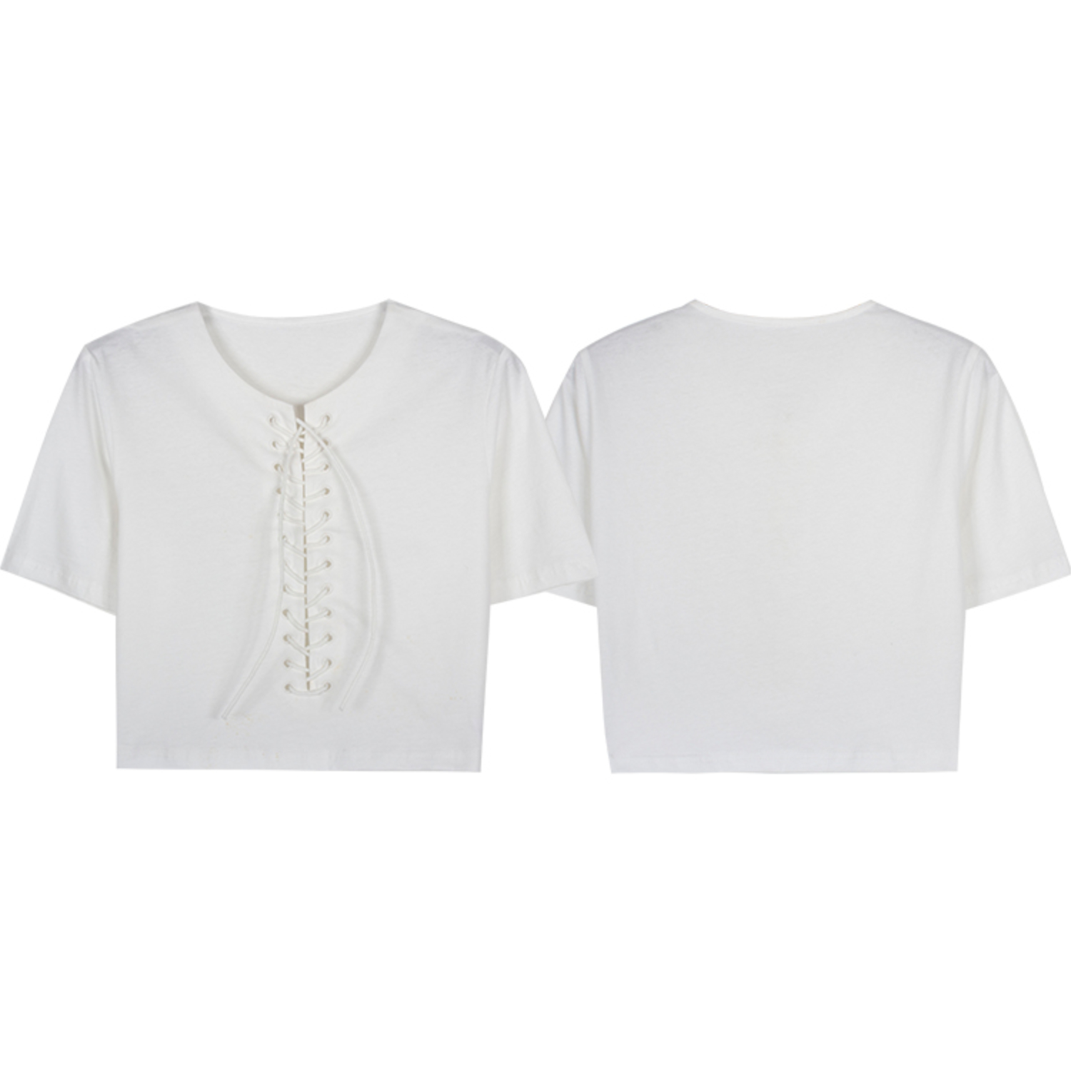 White Deep V Tie Short Sleeve T-Shirt | Size: S / M / L |