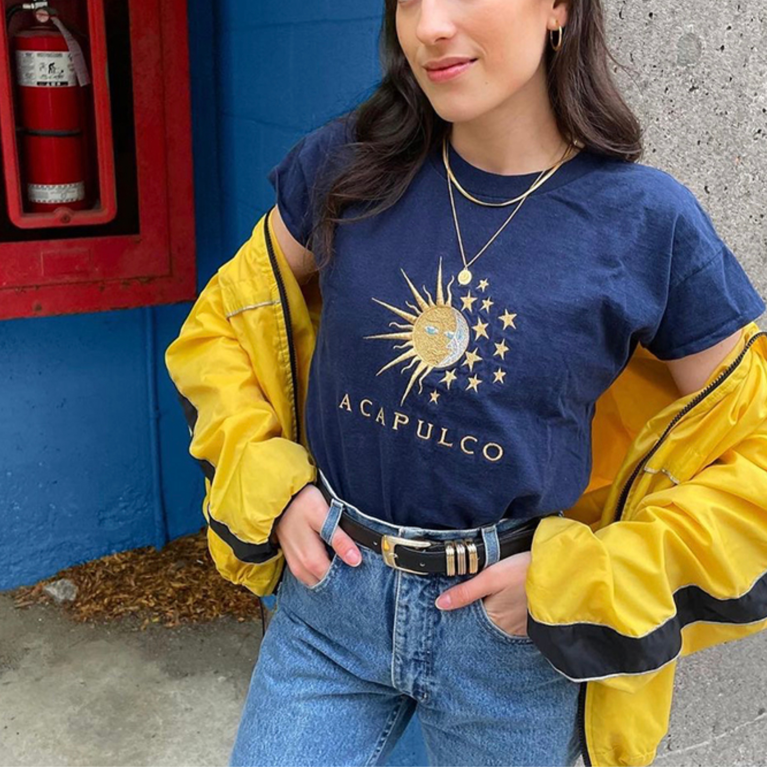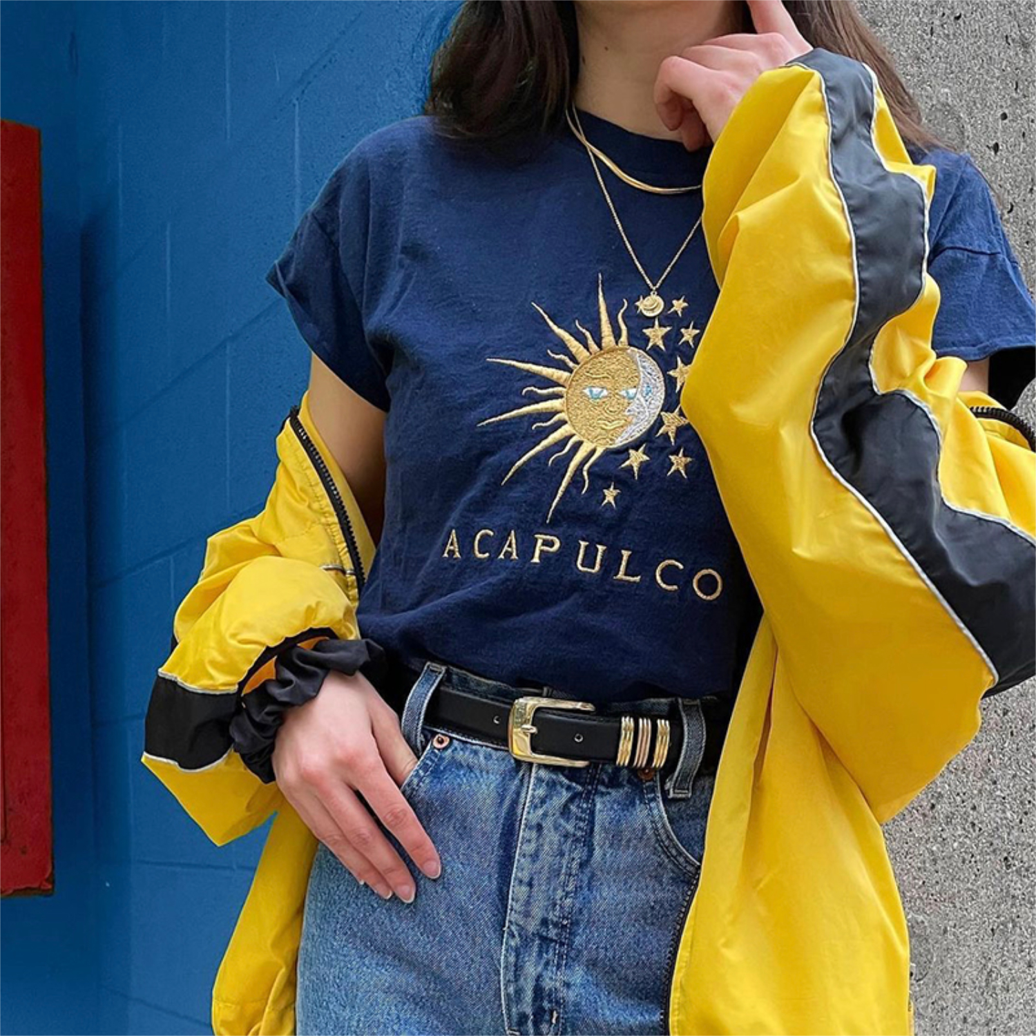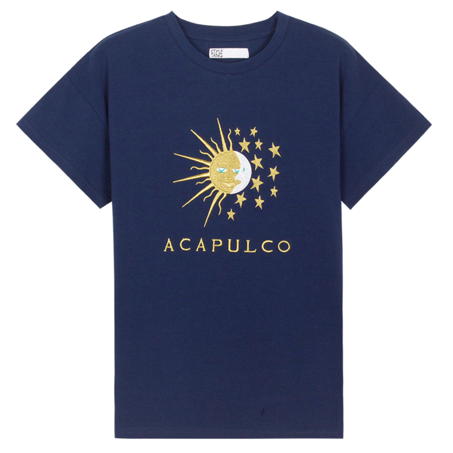 Embroidered Round Neck T-shirt In Dark Blue | Size: S / M / L |