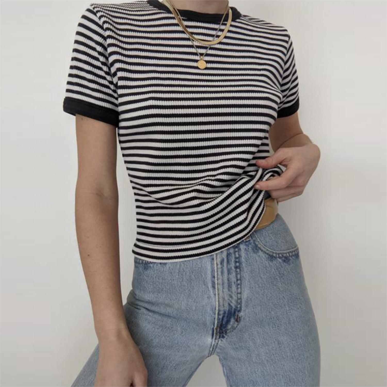 Black And White Stripes Slim T-shirt