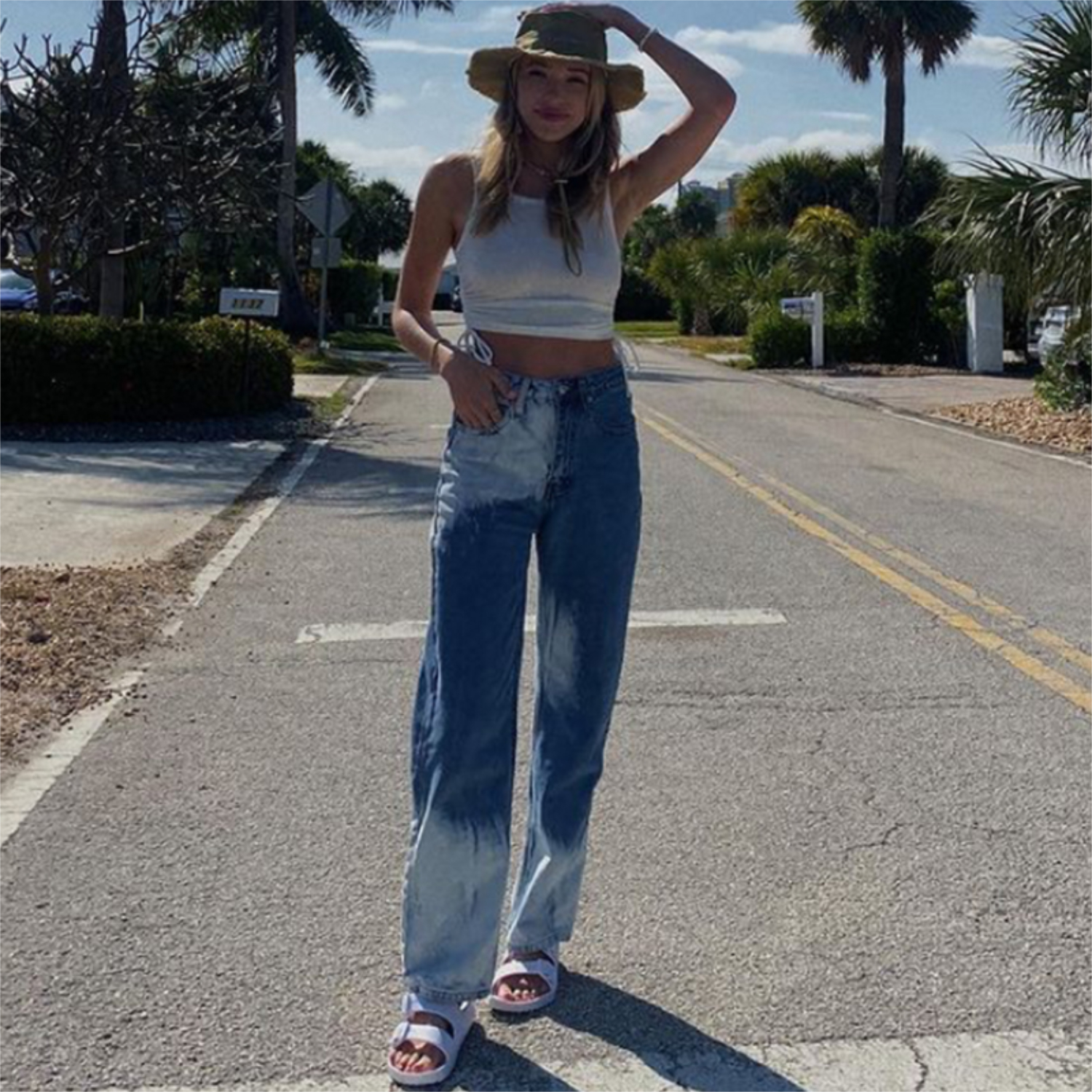 Vintage Light Blue Tie-dye High Waist Jeans | Size: S / M / L |
