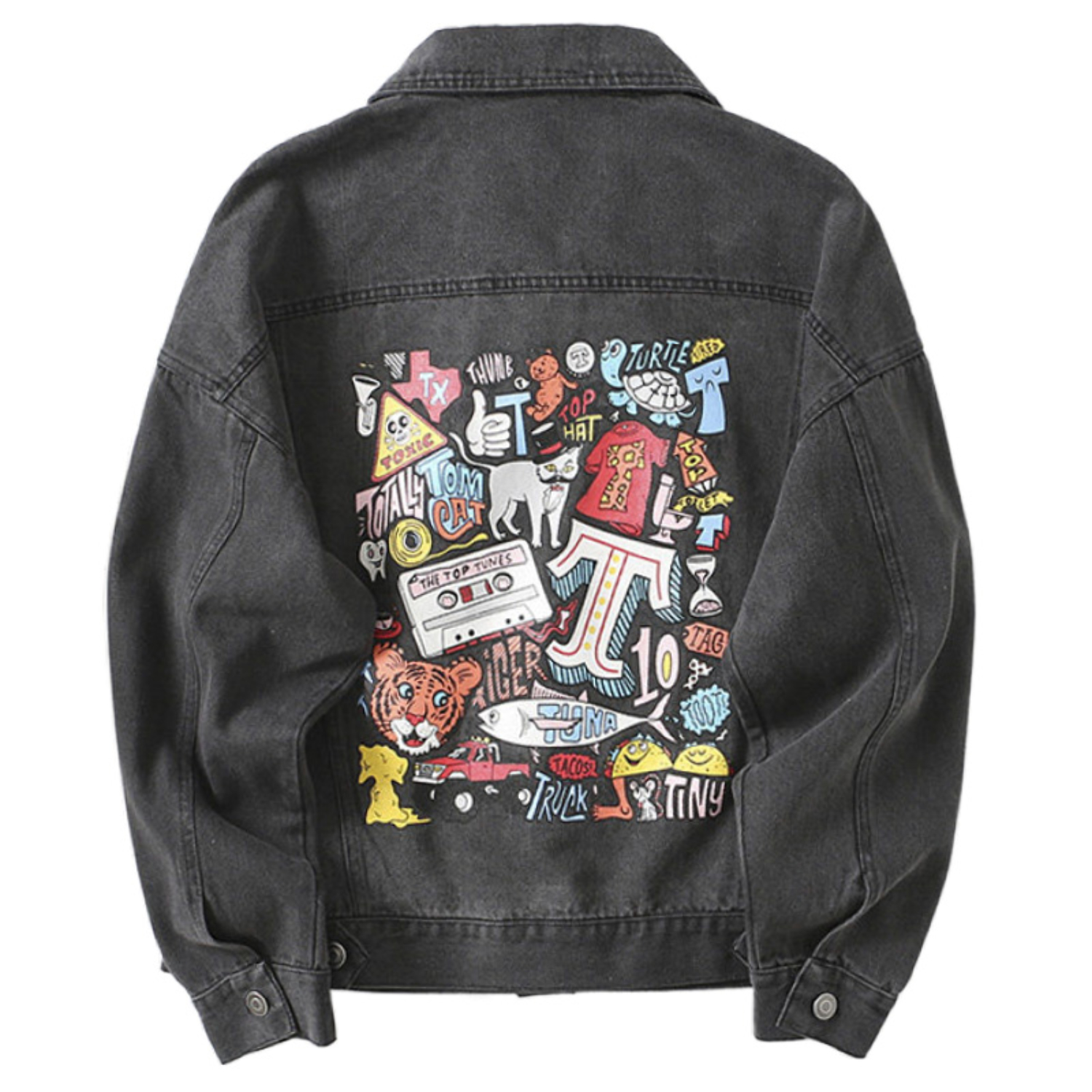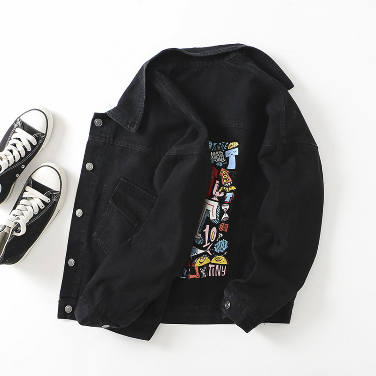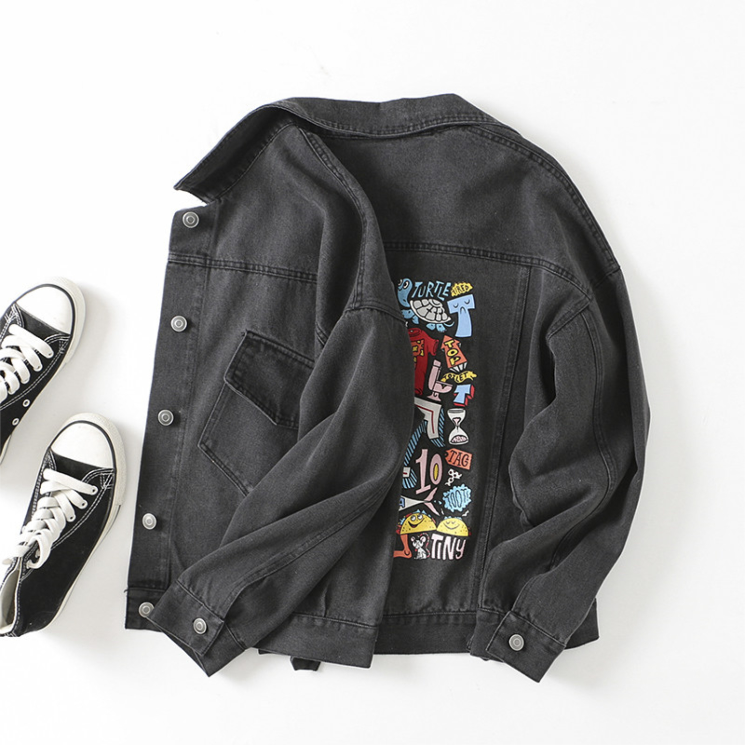 Cute Cartoon Print Denim Jacket | Freesize: Shoulder:62 /Chest:120 / Sleeve:57 / Length: 57 CM | Colour: Grey / Black |