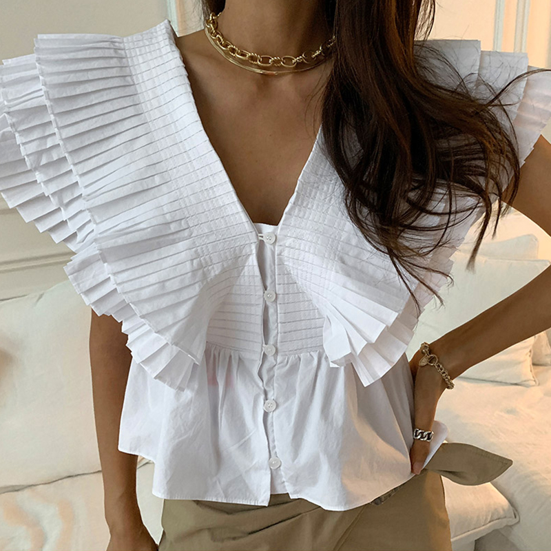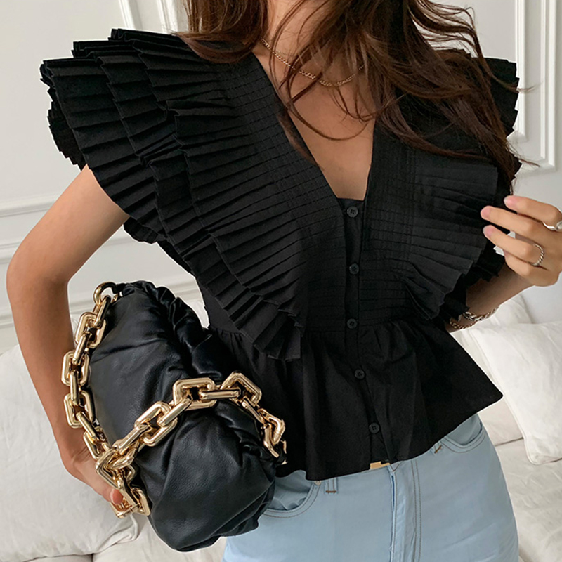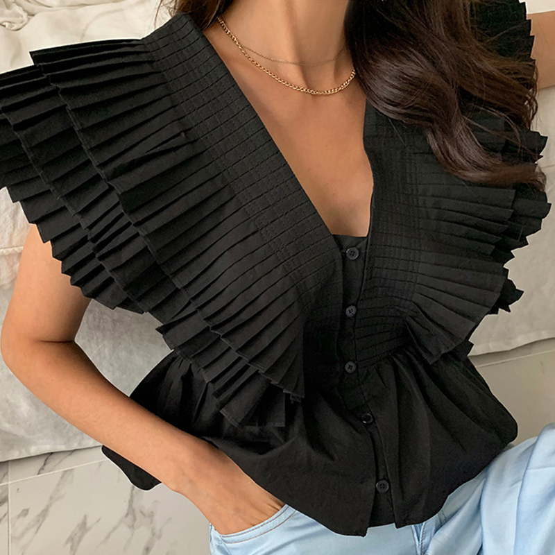 Summer Retro V-neck Stitching Shirt | Colour: Black / White | Freesize |