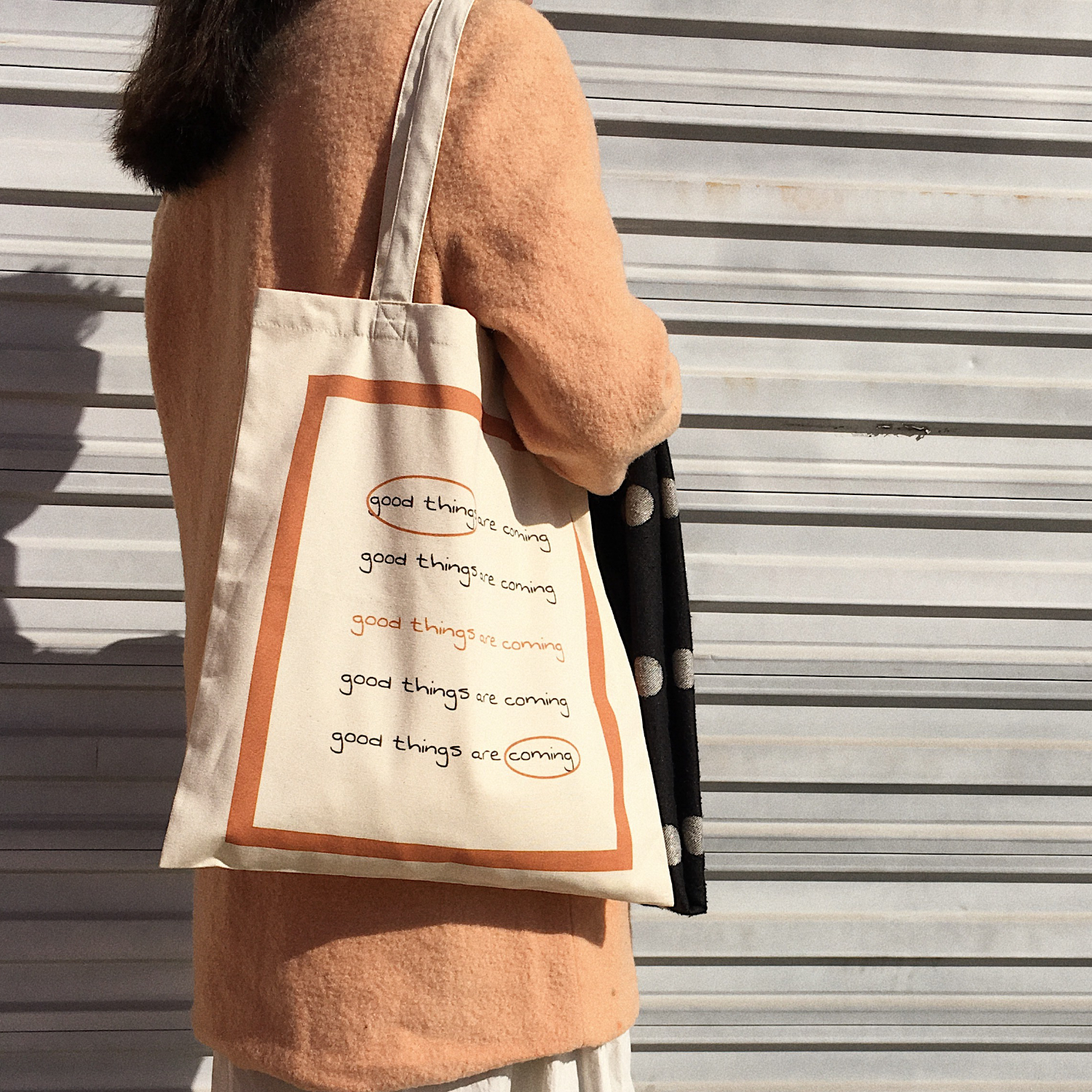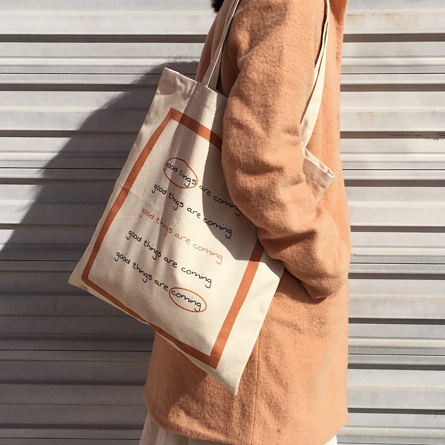 Good Things Are Coming Tote Bag, Minimalism | Size: 37 x 40 cm | Strap length: 60cm |
