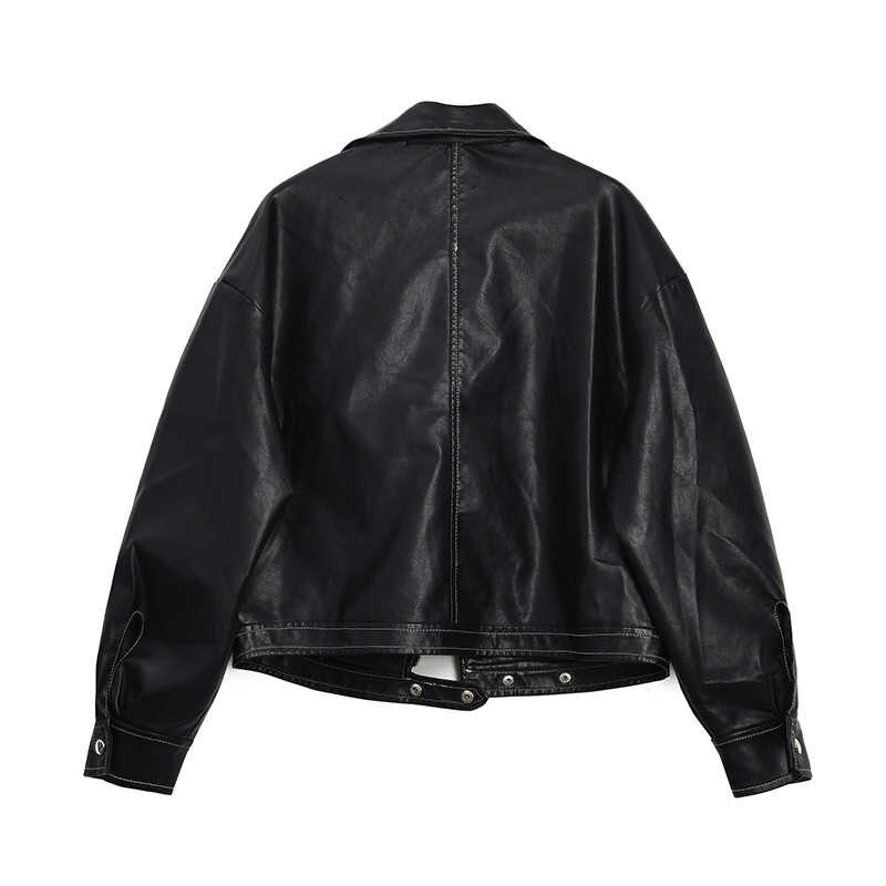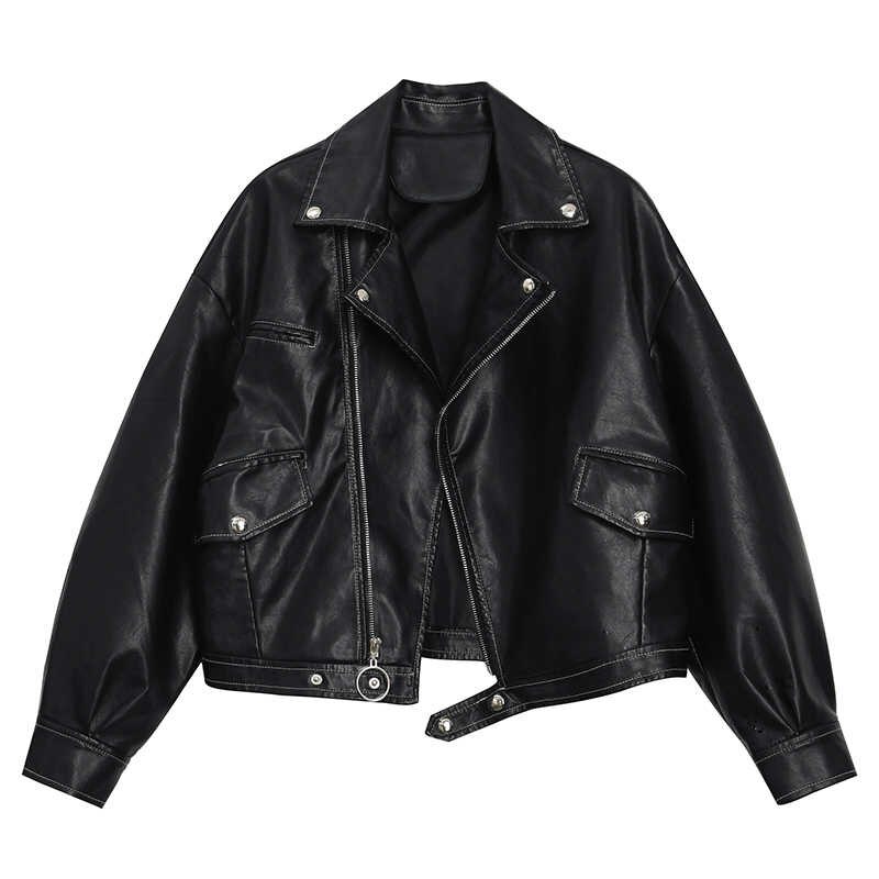 PU Faux Leather Loose Fit Jackets | Size: M / L | Colour: Green / Black |