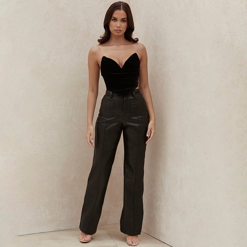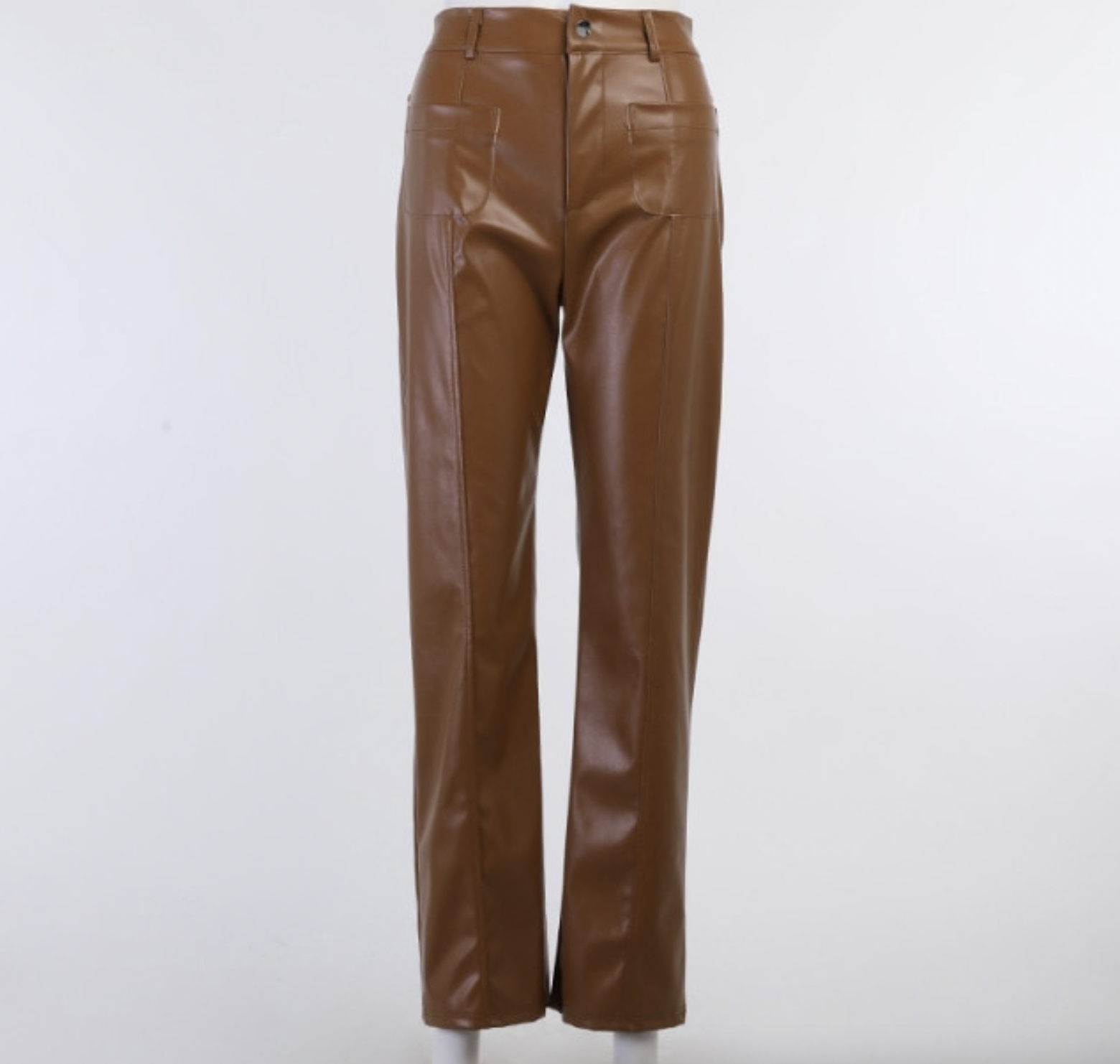 Straight Faux Leather Pockets Pant Slim Leisure Pants Stylish PU Leather Pants