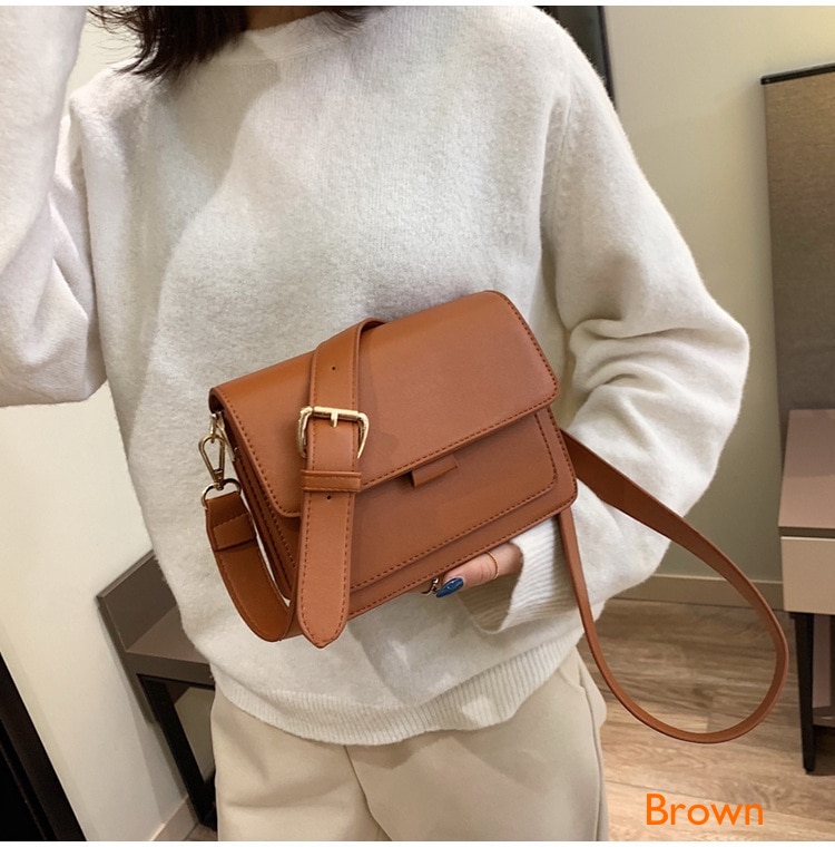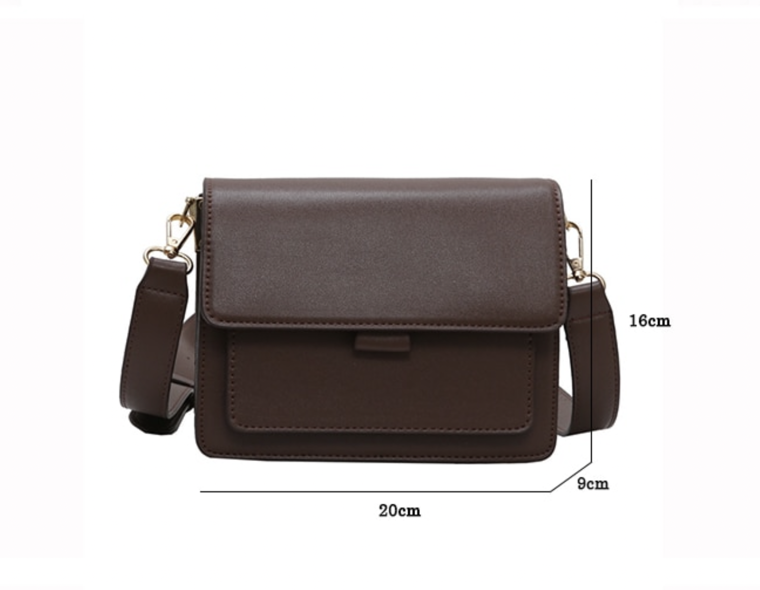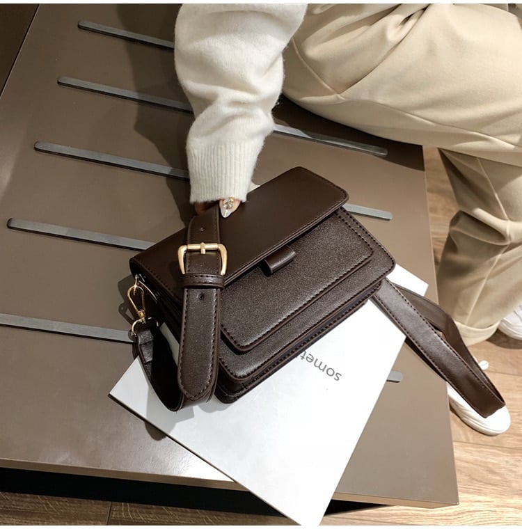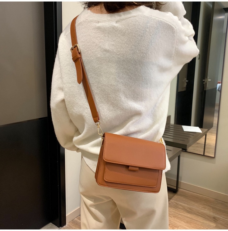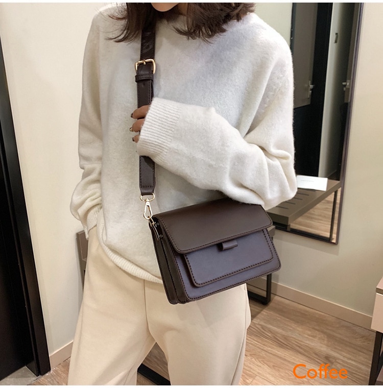 Crossbody Square Leather Bag Wide Strap Shoulder Bag