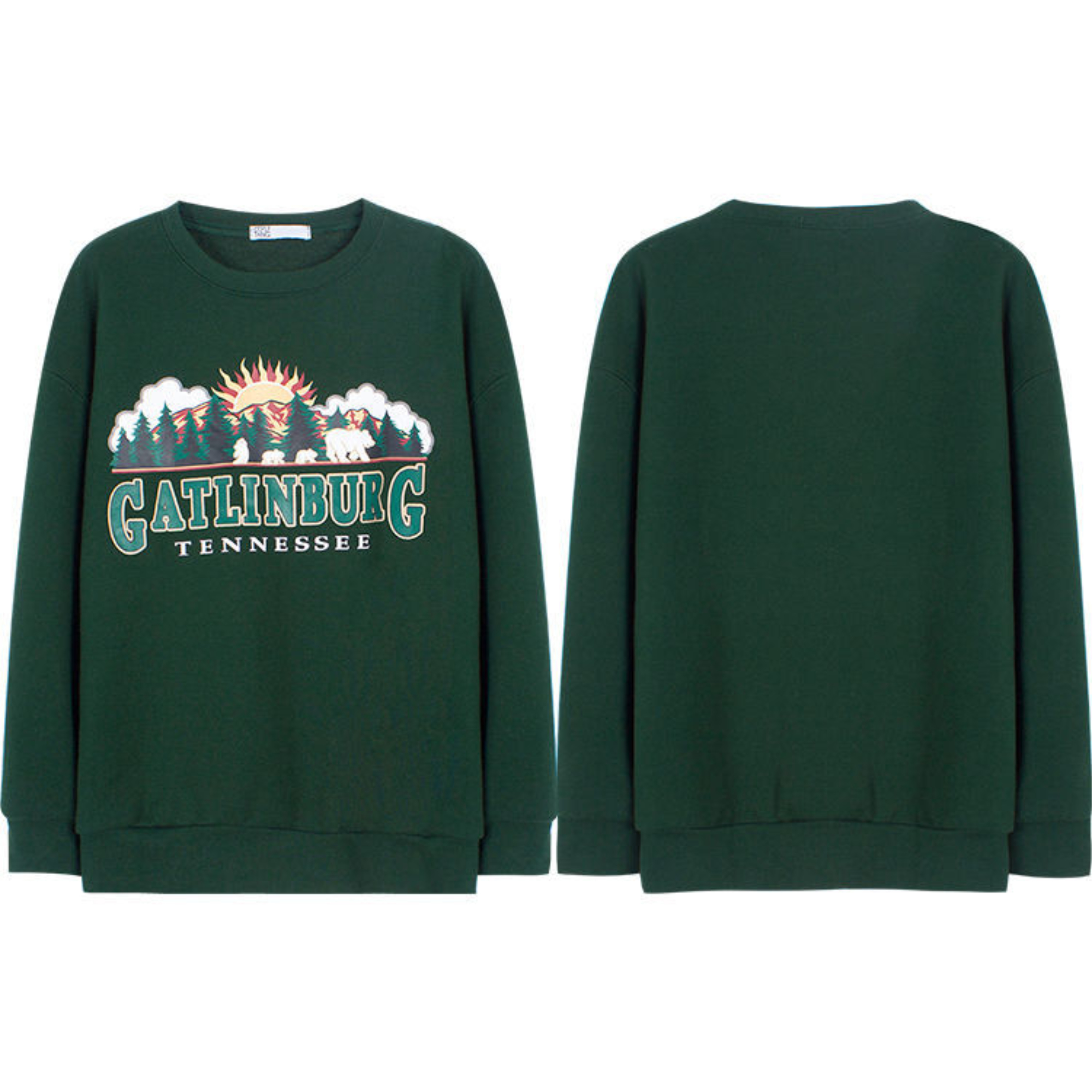 Y2K Vintage Green Oversize Hoodies Aesthetic Print Sweatshirt