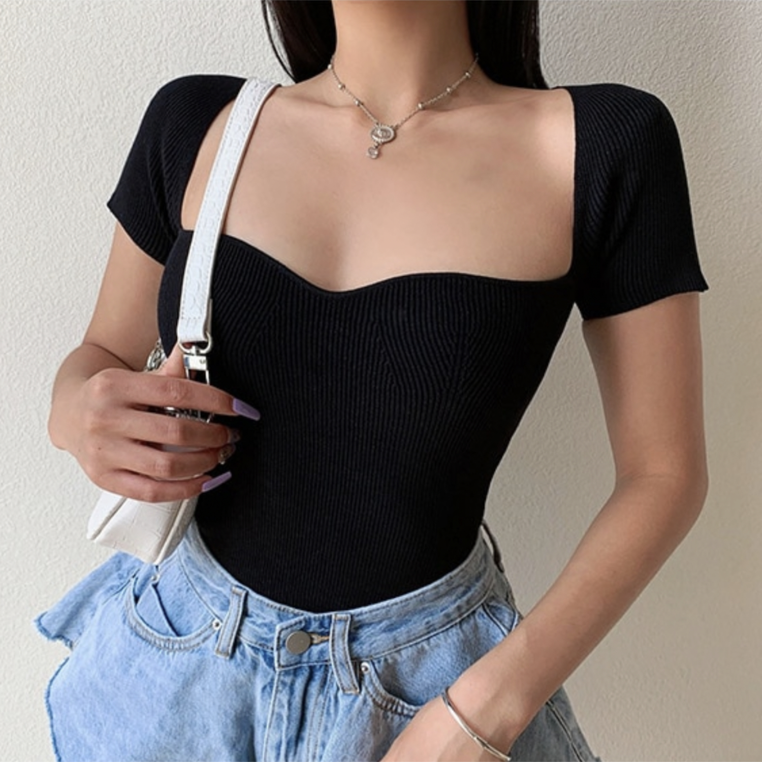 Square Neck Ribbed Knitted Top Women Sexy Solid Color Stretch Chic Girls Fashion Street Style Crop Top 2022