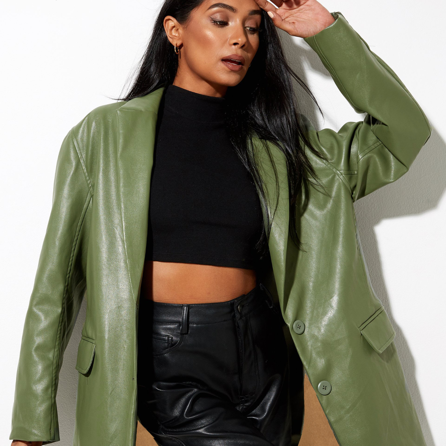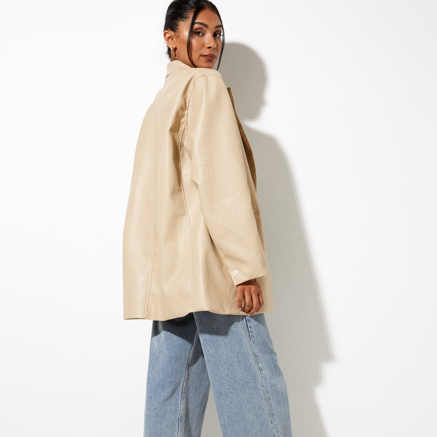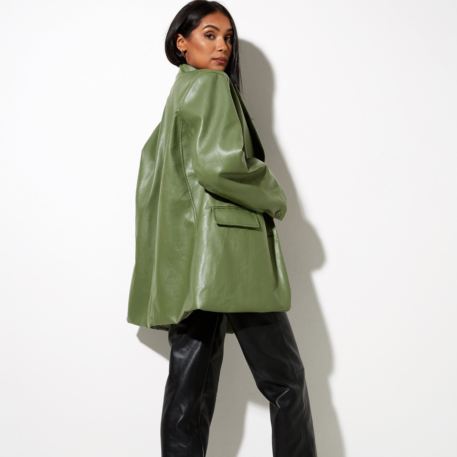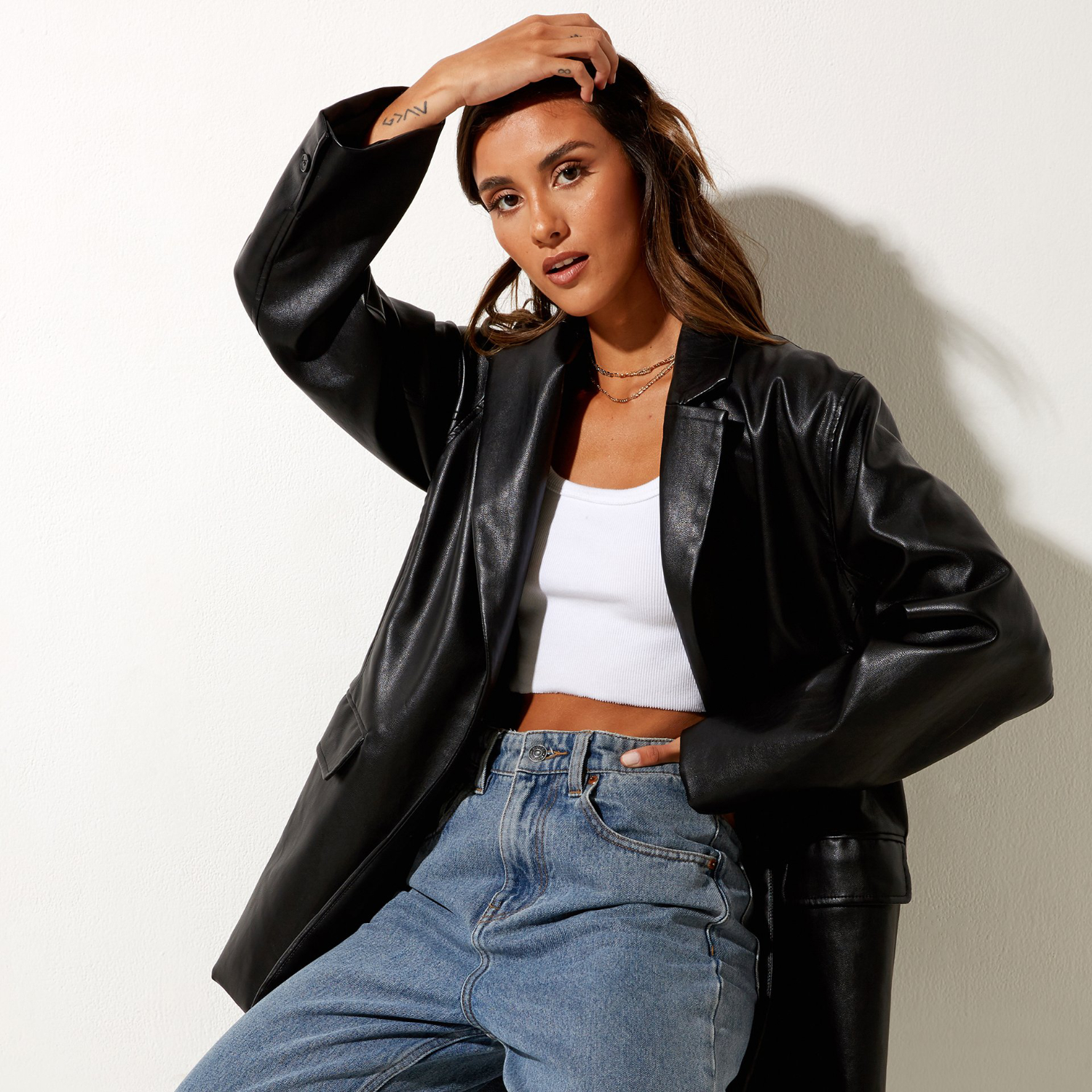 Trendy PU Leather Blazer Tailored Collar Streetwear Blazer