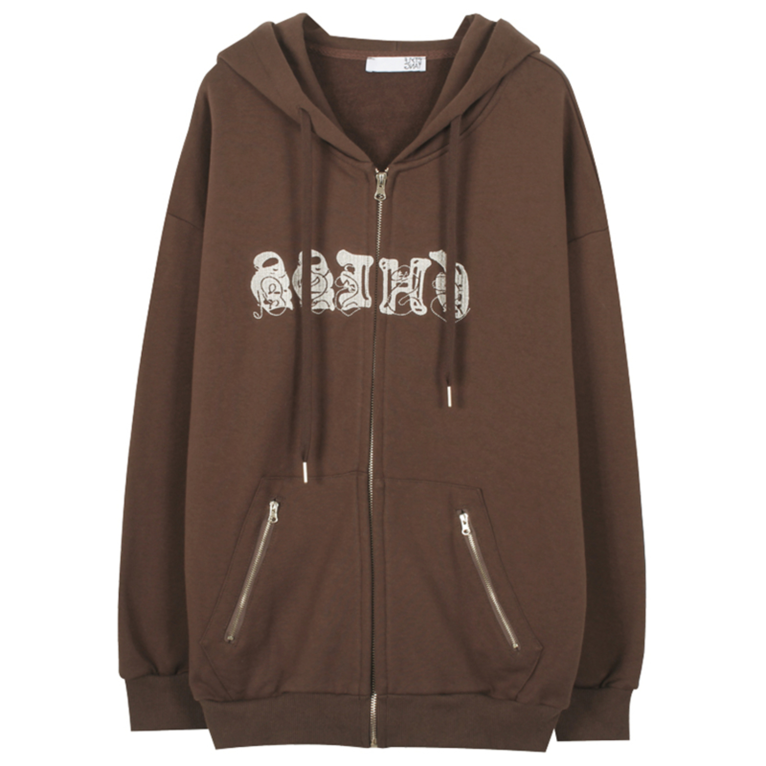 Retro BF style brown hoodie sweater jacket, new thin cardigan top